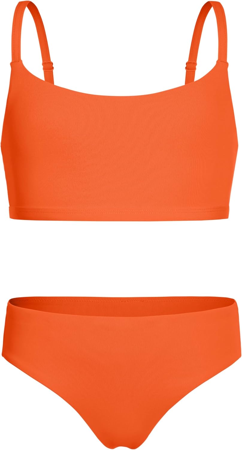 CRZ YOGA Girls Bikini Set 2 Piece Swimsuit - Beach Sports Bathing Suit Scoop Neck Adjustable Straps Padded Kids Teen
