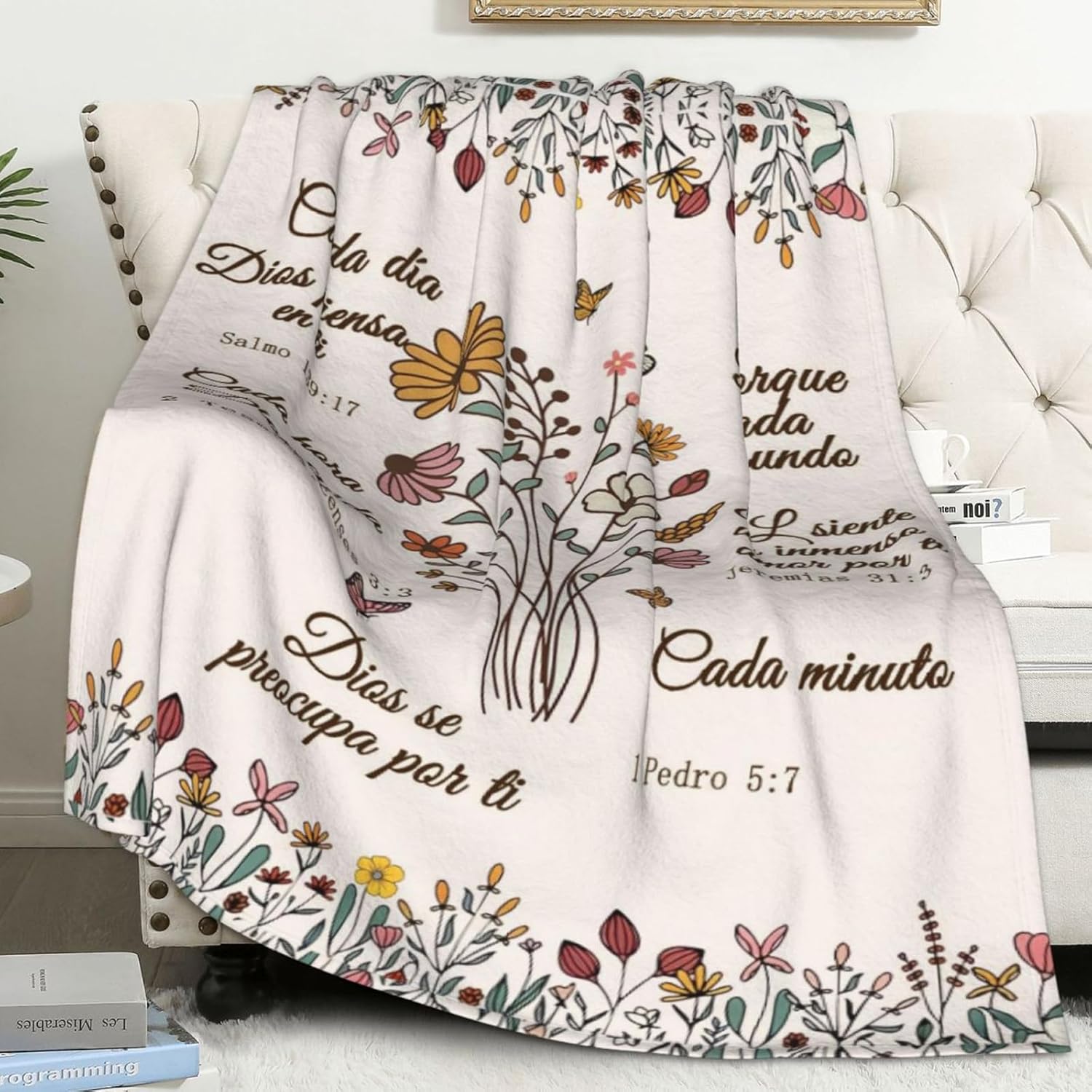 Spanish Christian Blanket Birthday Gifts for Women Men Regalos Cristianos para Mujer Inspirational Scripture Throw Blanket with Bible Verse Religious Gifts (Creamy, 40x50 inch, Daisy Flower)