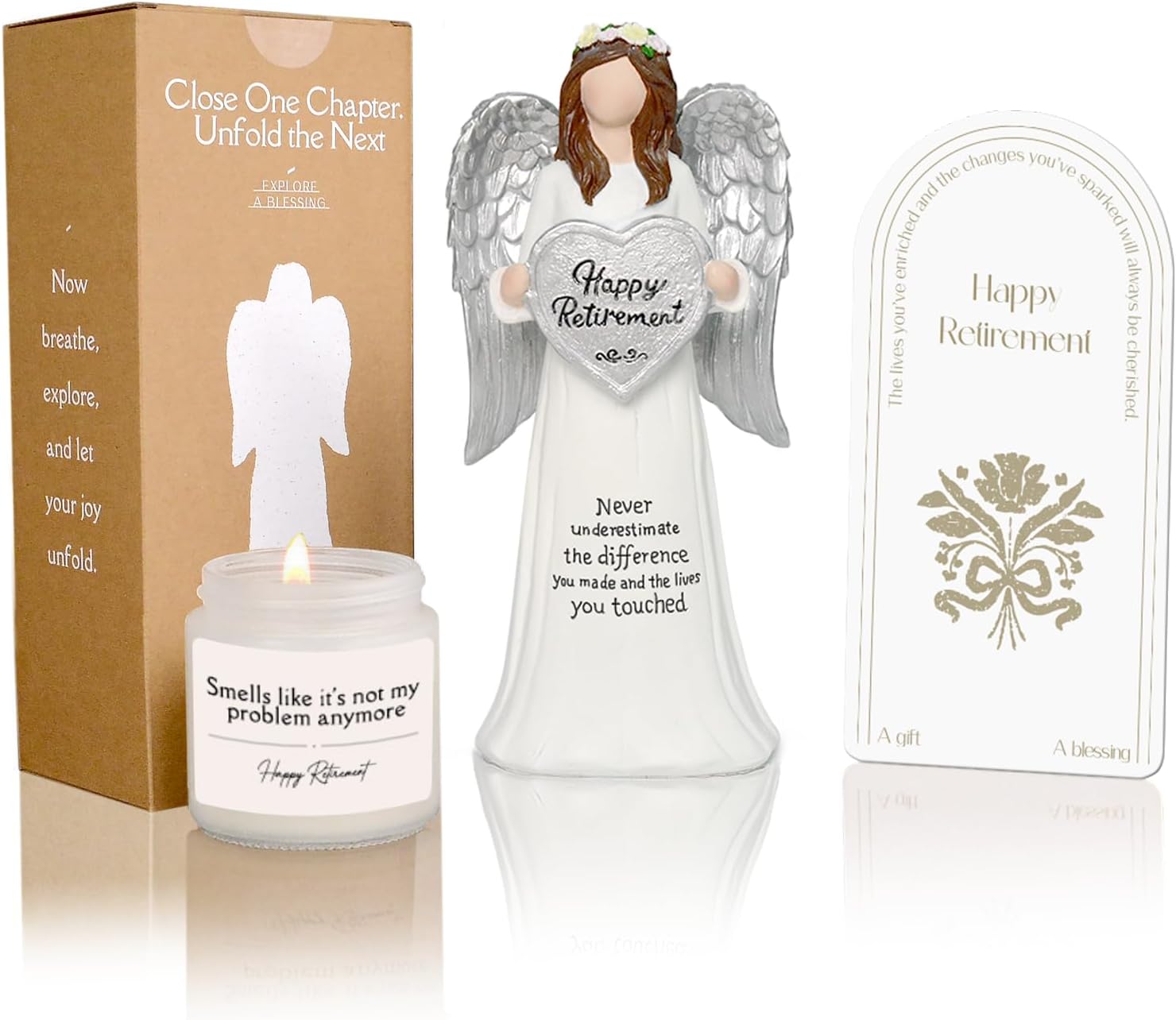 Angel Retirement Gift Set for Woman 2026 with Funny Retirement Candle and Retirement Card for Woman Coworker Teacher Nurses Doctors Friends, 7.09" Retired Angel Figurine Party Decorations