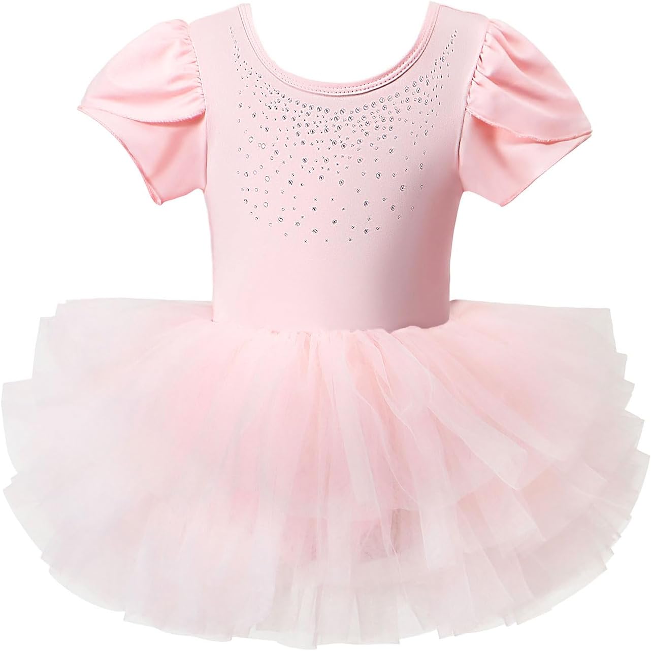 KARETT Toddler Ballet Leotard with Snap Glitter Ballerina Outfit Criss-Cross Pink Tutu Dress for Girls 1-7 Years