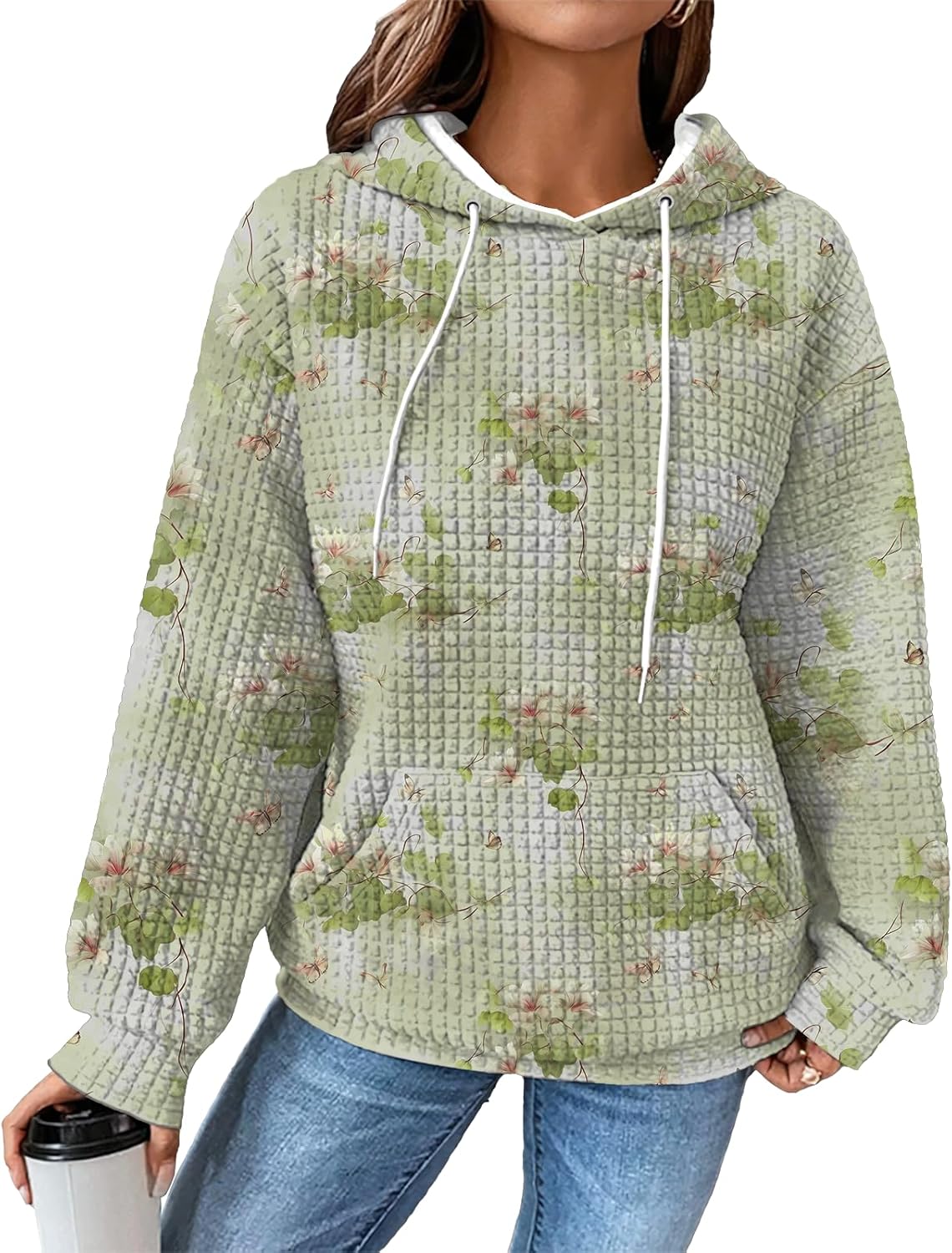 Hooded Sweatshirt Women Elegant Waffle Knit Hoodie With Pocket Casual Pullover Long Sleeve Comfy Fashion Qutfits