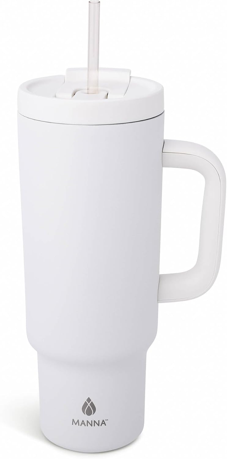 Manna Leisure Stainless Steel Insulated Tumbler with Leak-Proof Dual Function Lid - 40 Oz - Linen Powder Coat