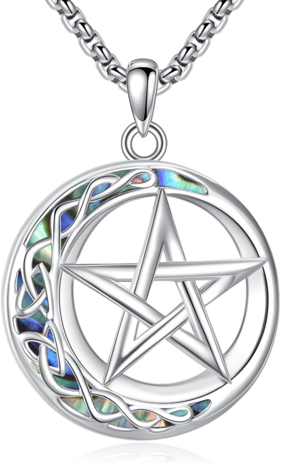 Pentagram Necklace S925 Sterling Silver Moon Pendant Celtic Knot Jewelry Gifts for Men Women