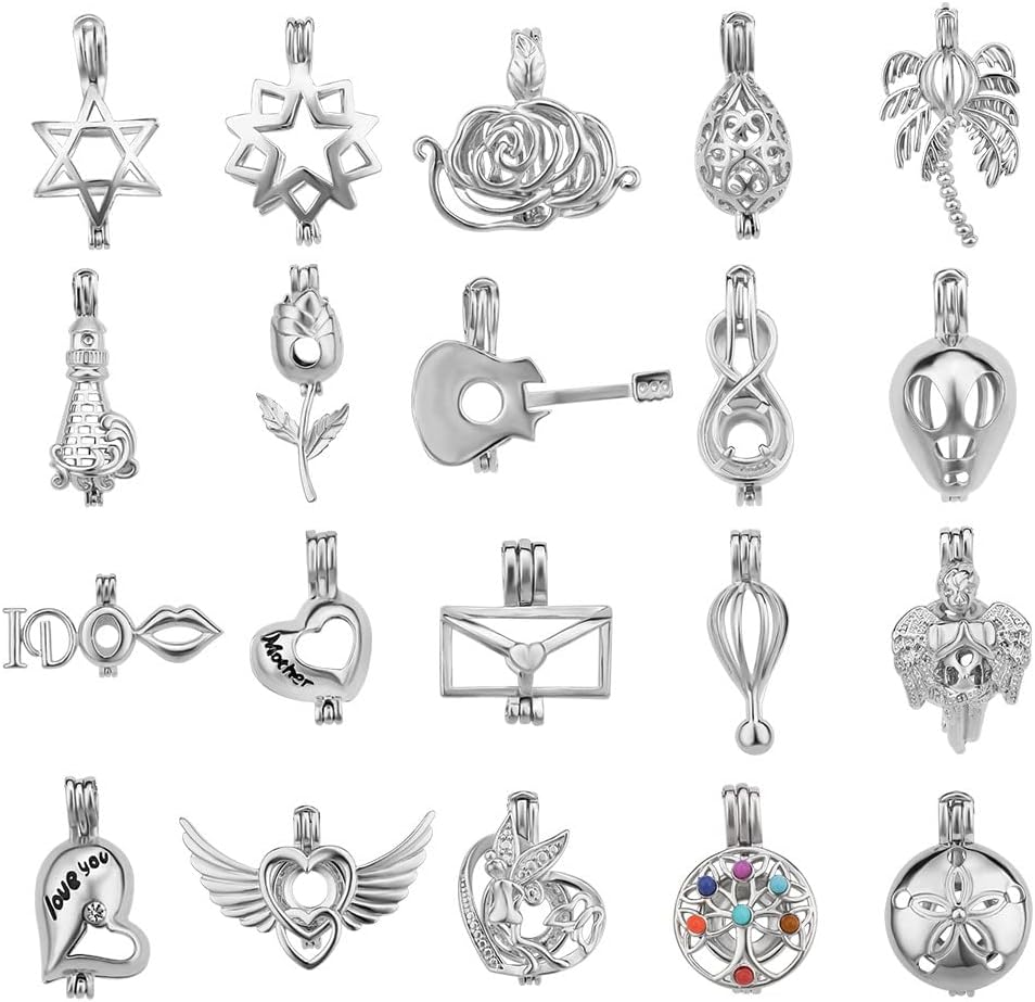 10Pcs Silver Plated Random Love Romantic Cage Pendants for Pearl Jewelry Making Silver Plated, Design Cage Pendants for Women