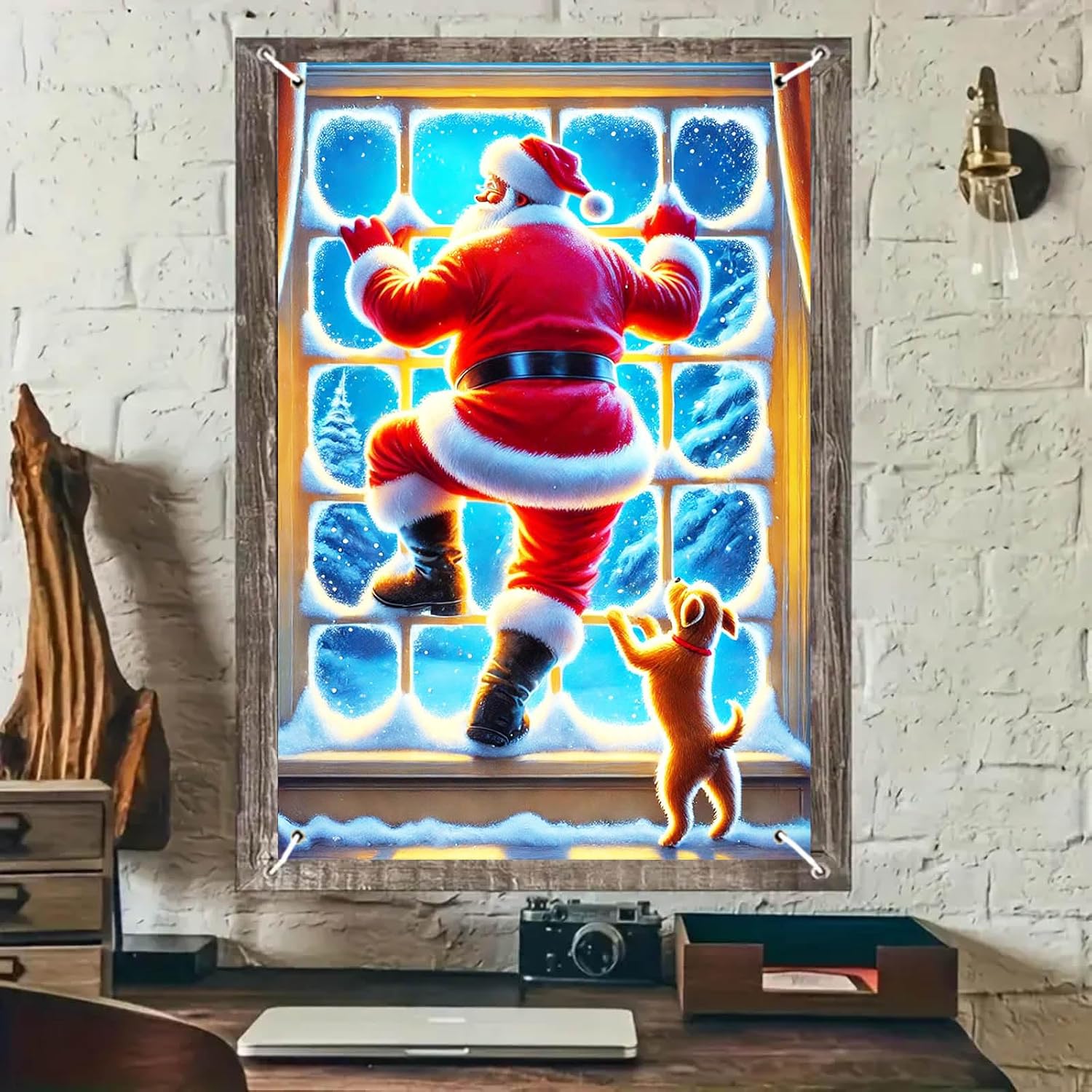 - Home Decor: ideal for any deck patio porch or veranda this 12x18 christmas santa and dog window garden flag adds a charming touch to your backyard lawn or garden it is perfect for creating a warm and inviting holiday atmosphere