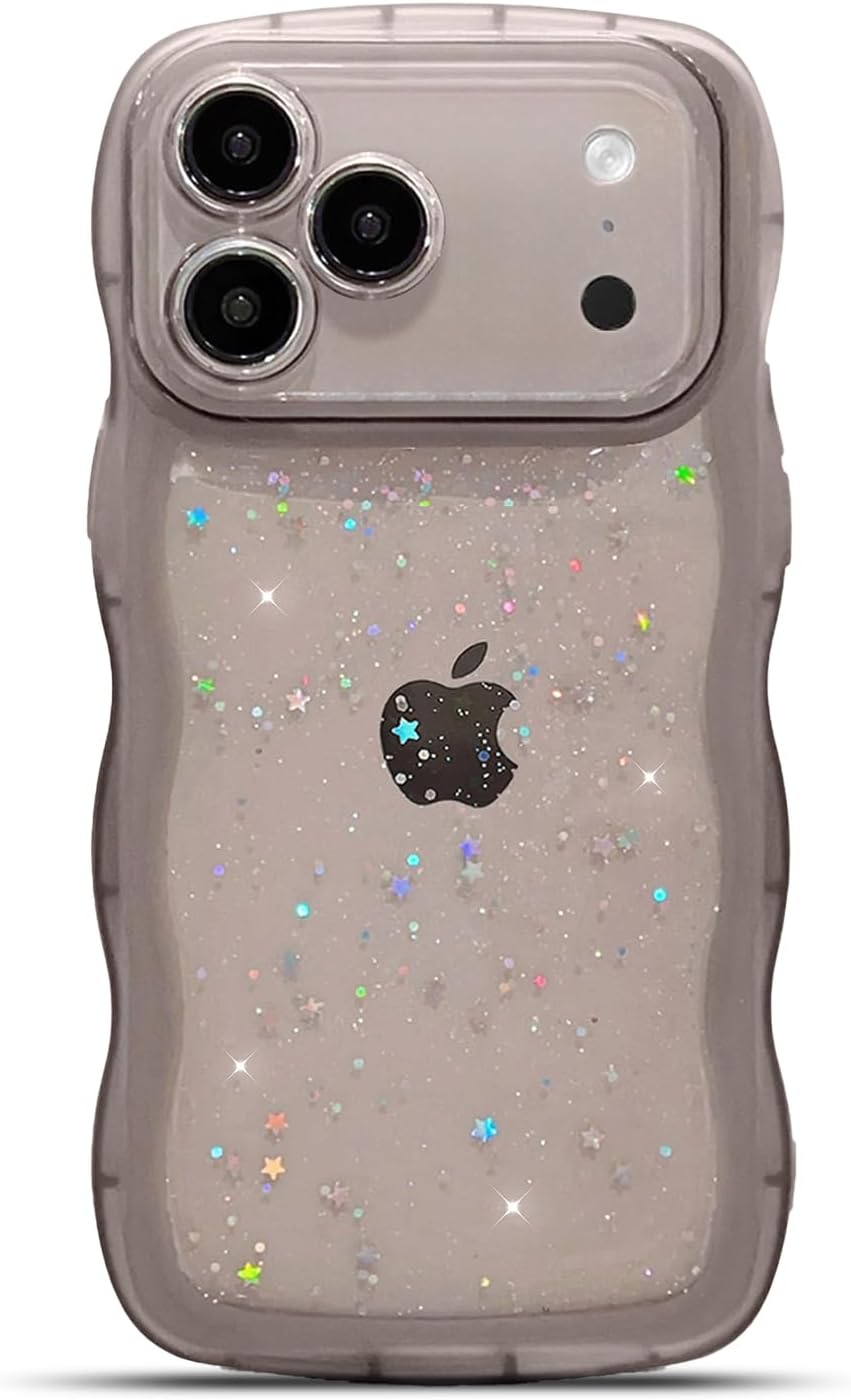 for iPhone 17 Pro Max Case 6.9" Cute Kawaii Curly Wavy Bling Glitter Star Shiny Sparkle Clear Transparent Camera Lens Protection Soft Shockproof Aesthetic Phone Cover for Women (Black)