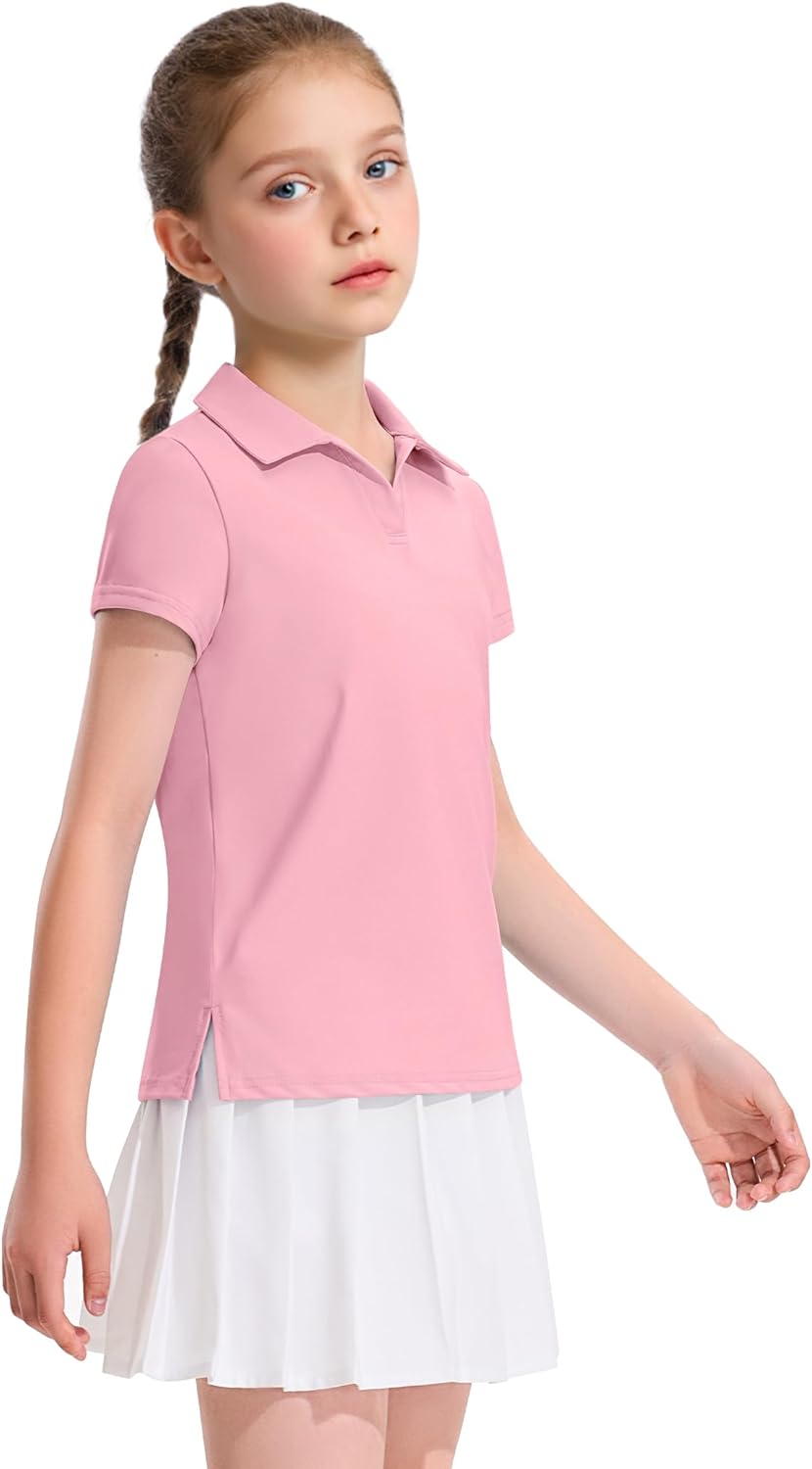 KEREDA Girls Polo Shirts Golf Tennis School Uniform Short Sleeve T Shirts V-Neck Collared Quick Dry Tops