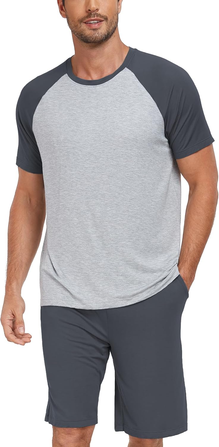 COLORFULLEAF Mens Pajamas Set Shorts and Shirt Bamboo Rayon Sleepwear Summer Nightwear Lightweight Sleep Sets S-XL