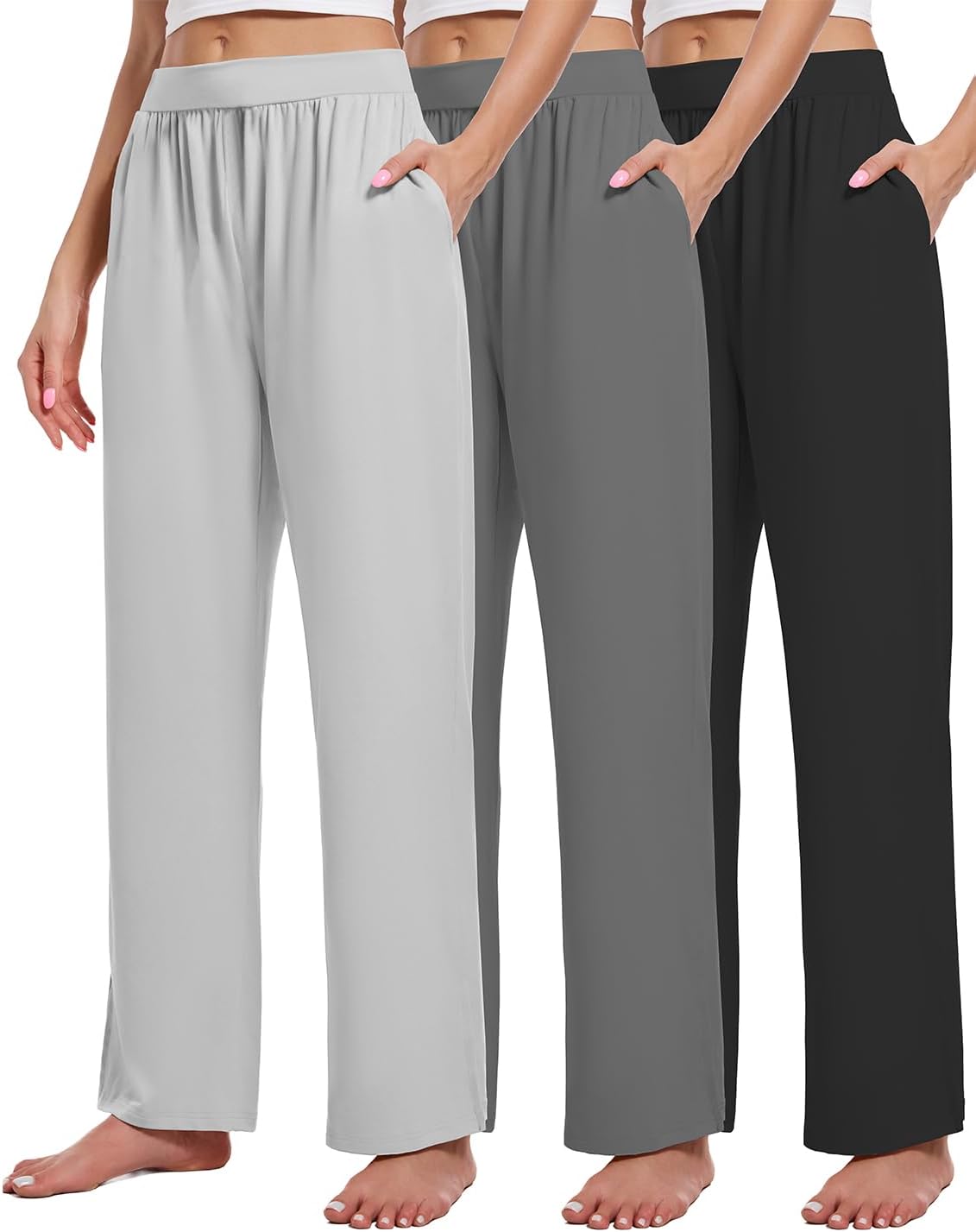 3 Pack Women's Lounge Pants Cozy Wide Leg Lounge Pants with Pockets Loose Flowy Yoga Sweatpants Workout Comfy Jogger
