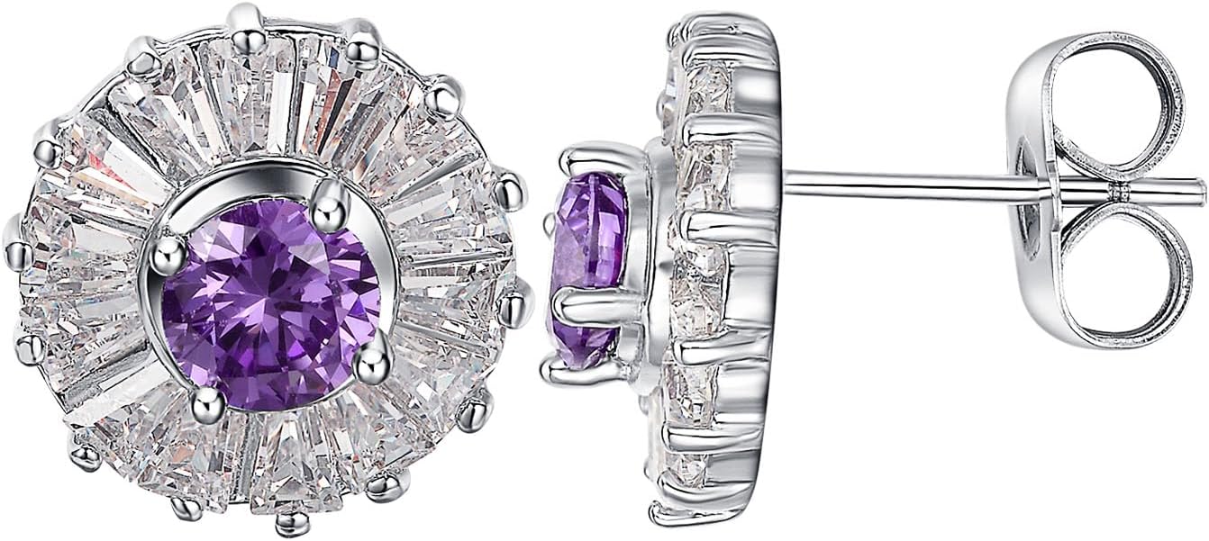 925 Sterling Silver Stud Earrings, Sparkling Cubic Zirconia Pierced Earrings for Women, Hypoallergenic Trendy Jewelry