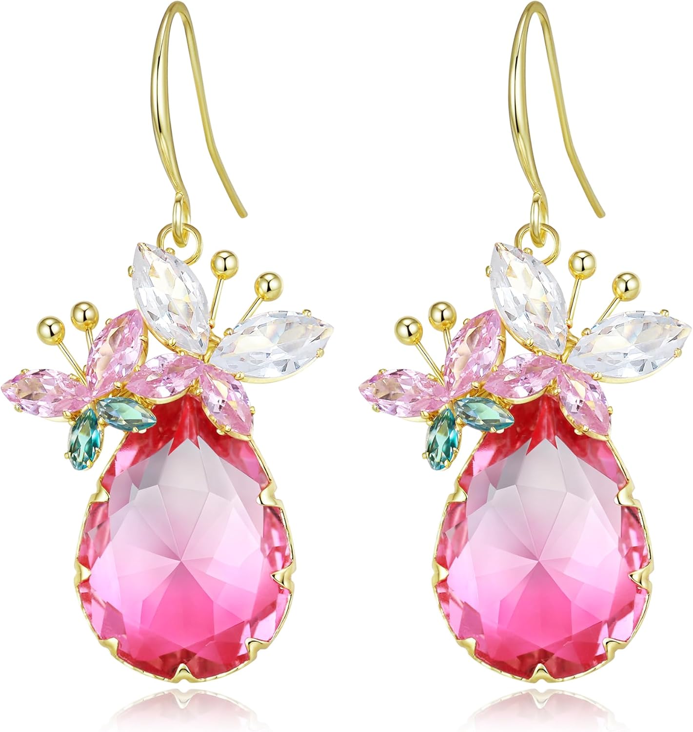 EleQueen Elegant Teardrop Crystal Dangle Fish Hook Earrings for Women, Dainty Waterdrop Jewelry Gift for Anniversary/Valentines day