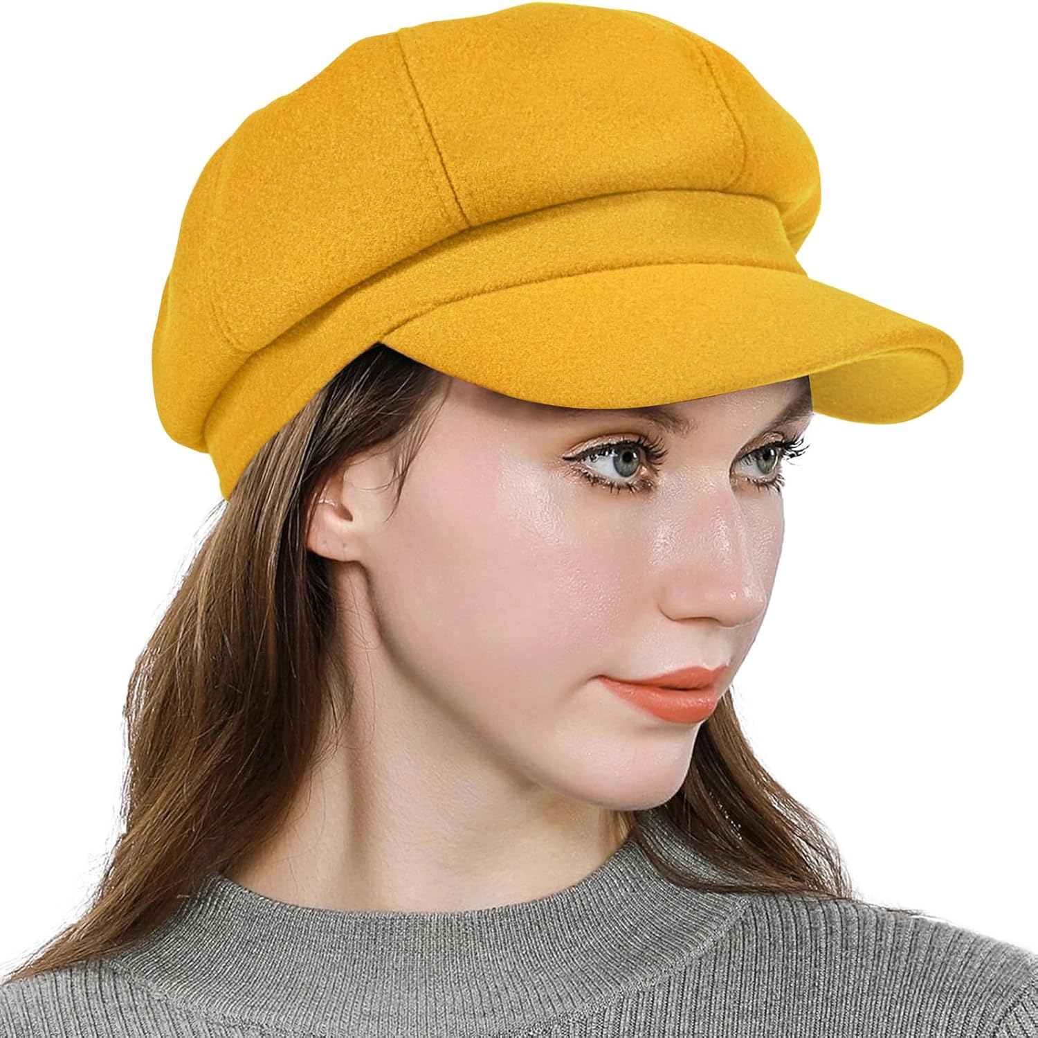 Women’s Newsboy Cap Wool Blend Retro Solid Color Girls Fashion Gatsby Cabbie Visor Beret Hat