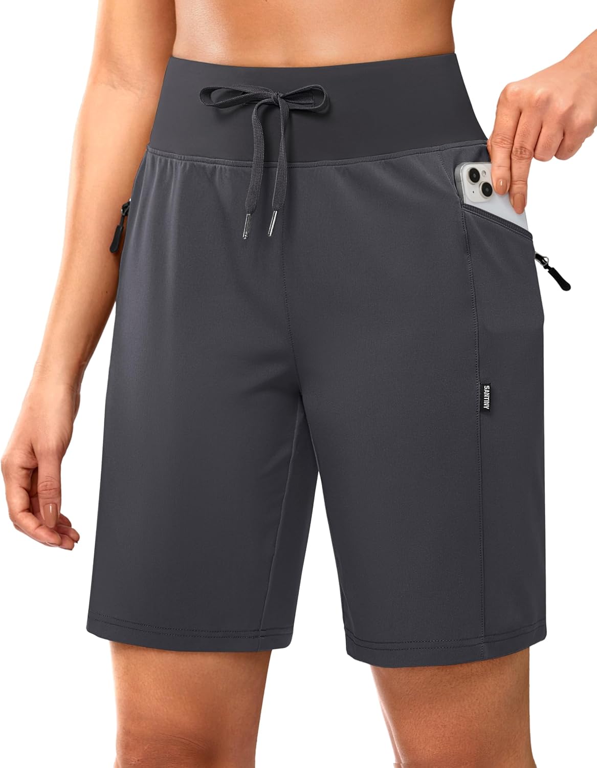 SANTINY Women's 9" Hiking Shorts with 3 Zipper Pockets Lightweight Quick Dry Long Shorts for Women Athletic Travel