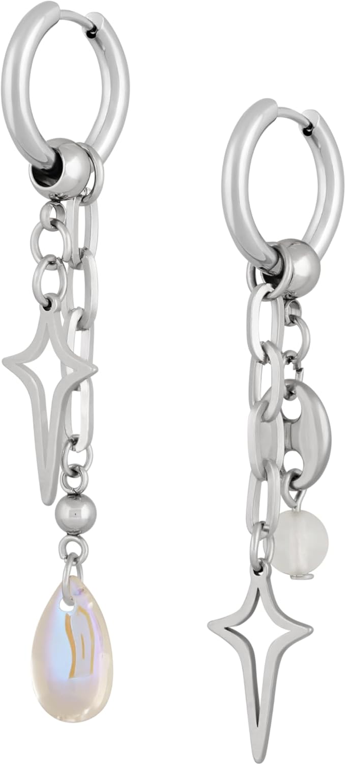 Sacina Teardrop Spike Star Hoop Earrings, Gothic Grunge Emo Punk Y2k Earrings, Goth Jewelry, Christmas Jewelry Gift for Women