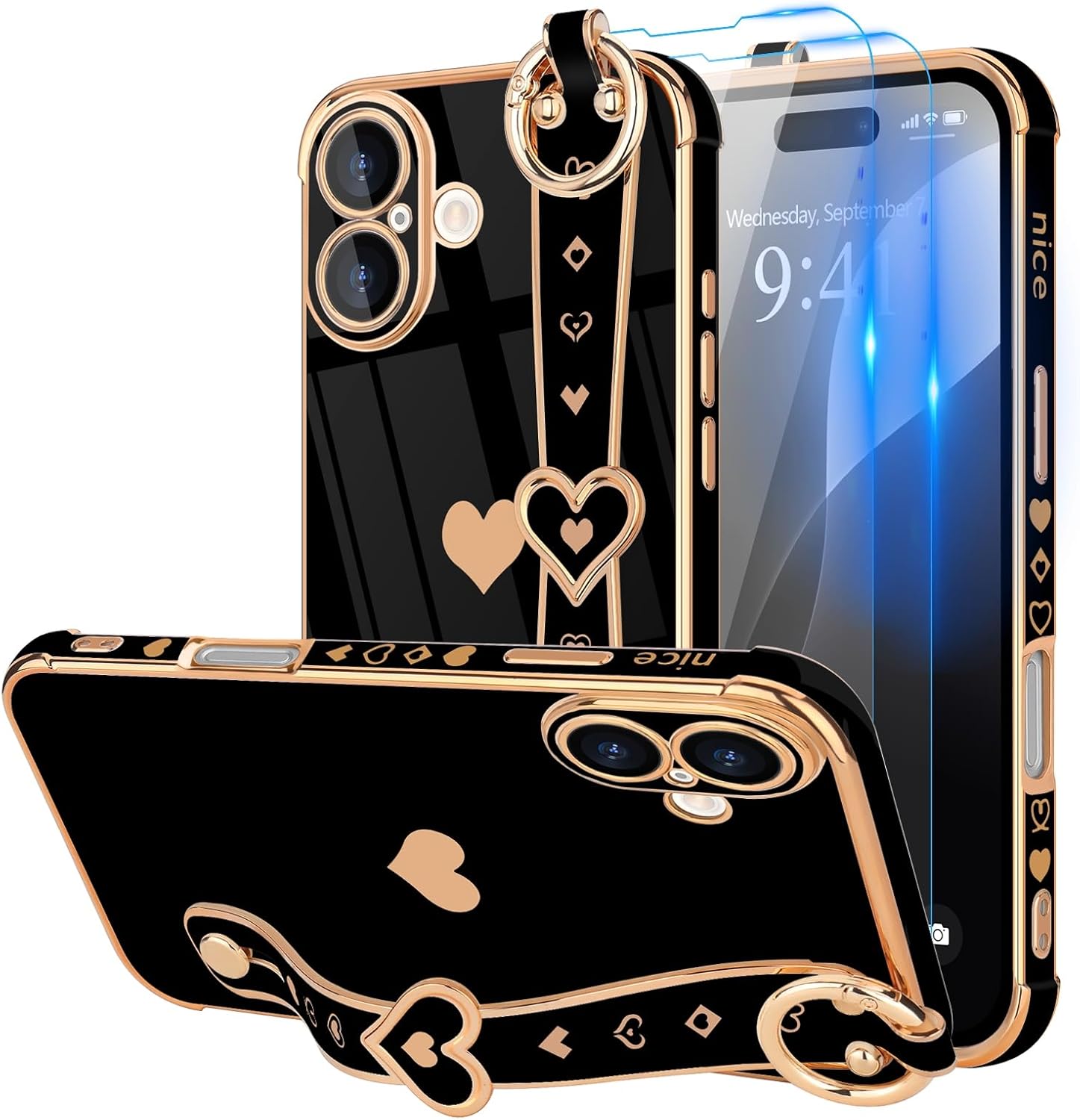 ![Compatible with iPhone 16 Case with Strap for Women Girls [2× Screen Protectors], Cute Love-Hearts Design, Wristband Kickstand Luxury Plating Edge Protective Phone Case (6.1") - Black](https://m.media-amazon.com/images/I/71z6+oC28LL._AC_SL1500_.jpg)