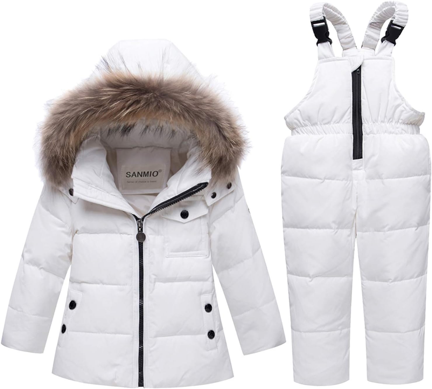SANMIO Toddler Snowsuit Boy Girl Winter Coat Snow Pants Set, Hooded Down Jacket + Bib Pants Kids Windproof Skiing Suit 2-6T