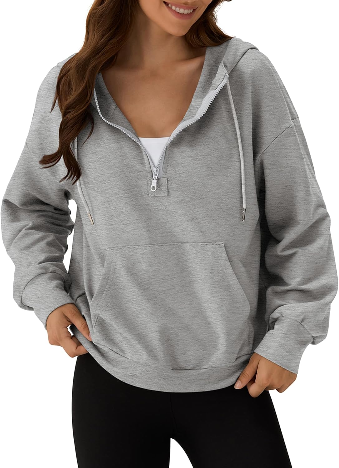 ZAFUL Women's Half Zip Oversized Cropped Hoodie lightweight Sweatshirt with Kangaroo Pocket for Fall Spring and Winter 2025