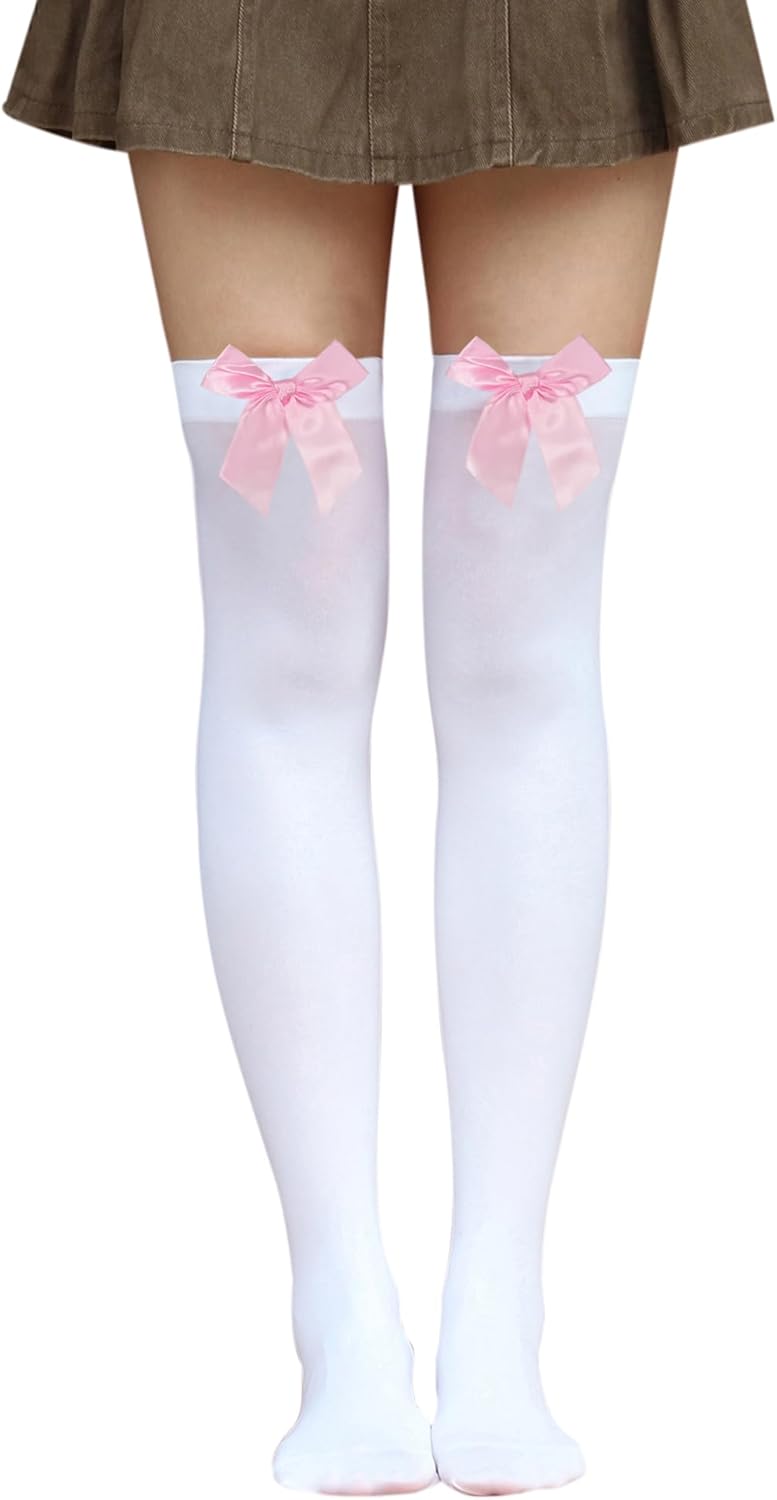 Bestjybt Women's Satin Bow Stockings Thigh High Over Knee Stockings