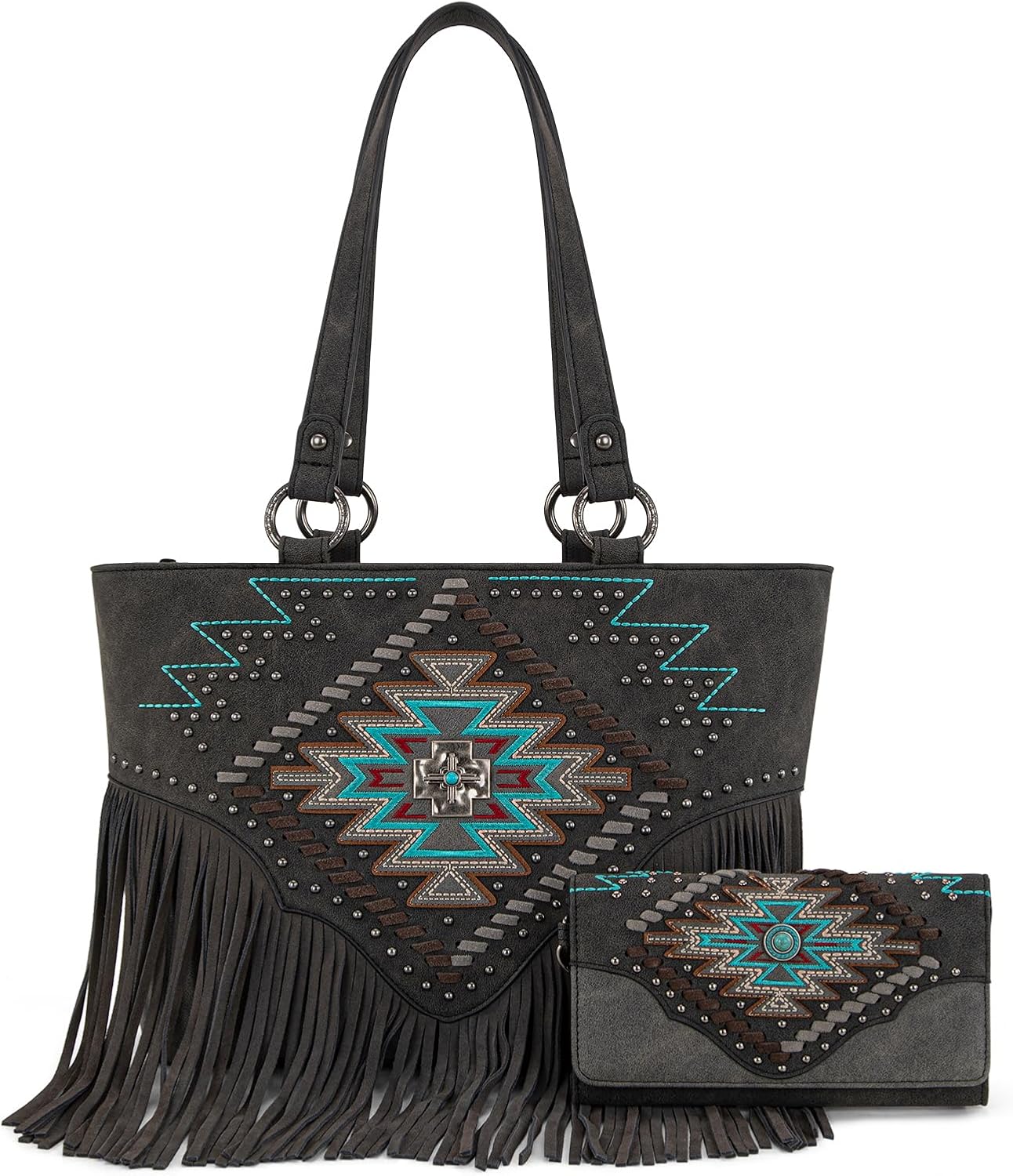 Montana West Western Tote Bag for Women Tooled Shoulder Purse with Wallet 2Pcs Set