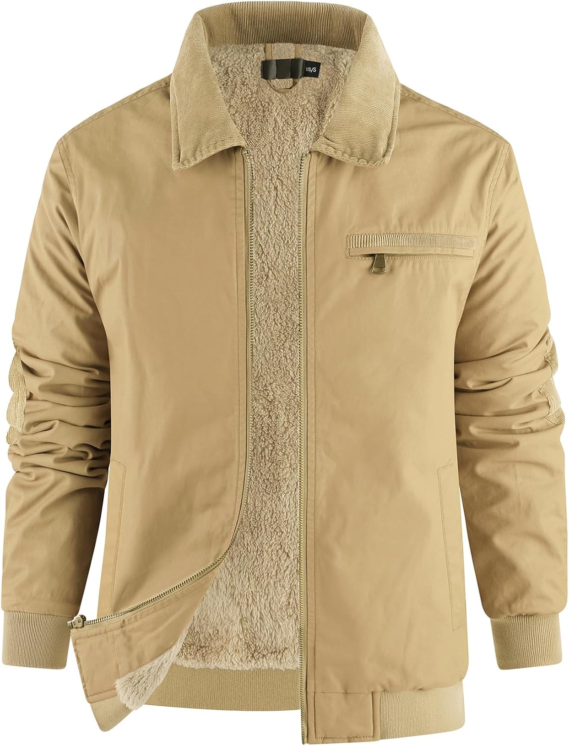 Flygo Mens Sherpa Lined Detroit Jacket Winter Warm Fleece Coat Waxed Washed Canvas Rugged Waterproof Jackets