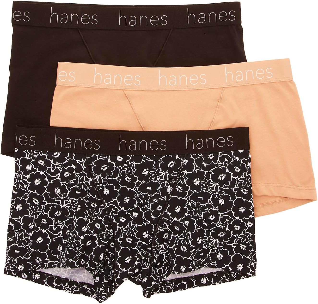 Hanes Women's Cotton Blend Boxer Brief Panty - 3 Pack, 45UOBB, Black/Floral/Glow, M