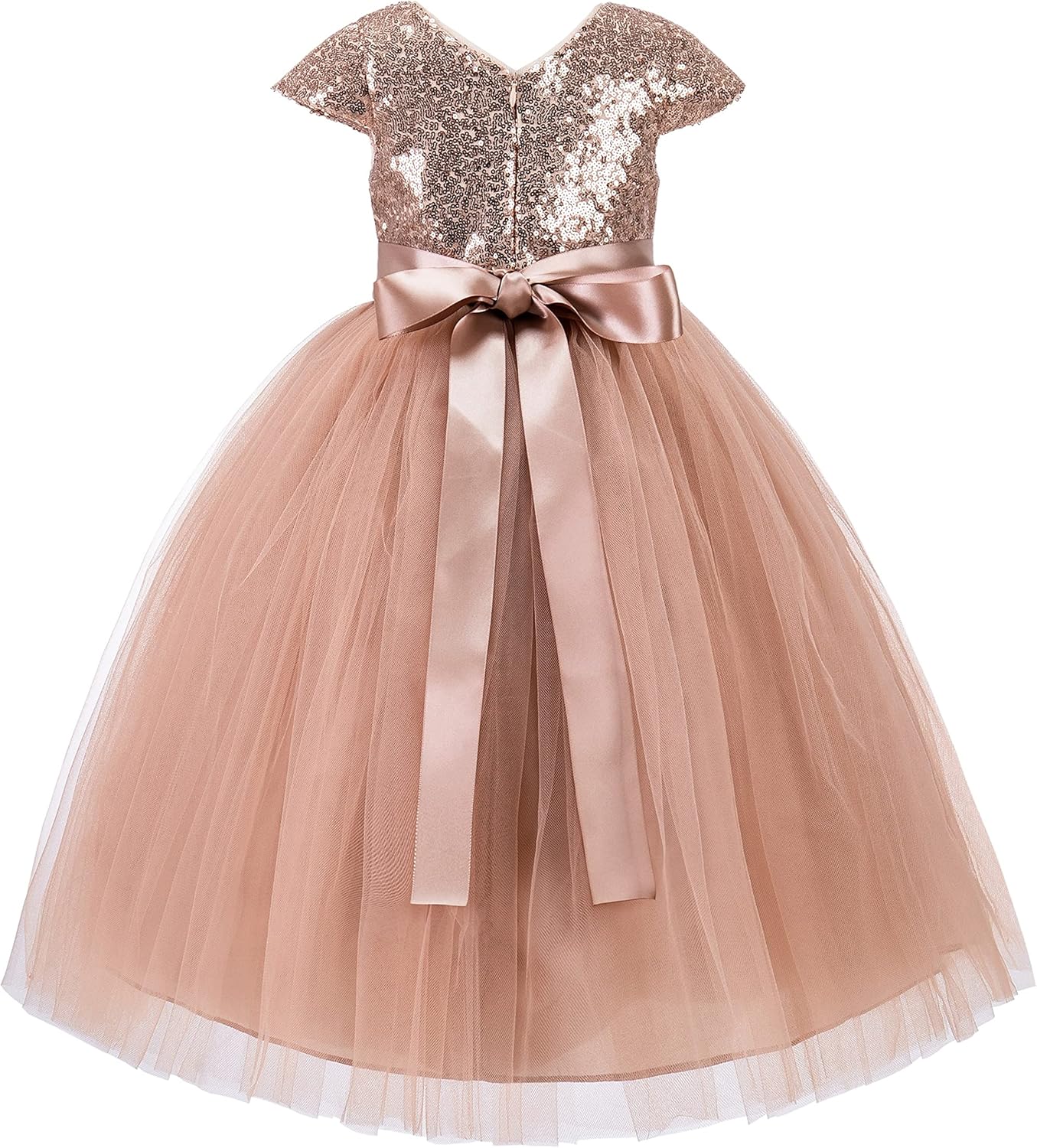 ekidsbridal Cap Sleeves Sequin Flower Girl Dress Photoshoot Dresses for Toddler Girl 211
