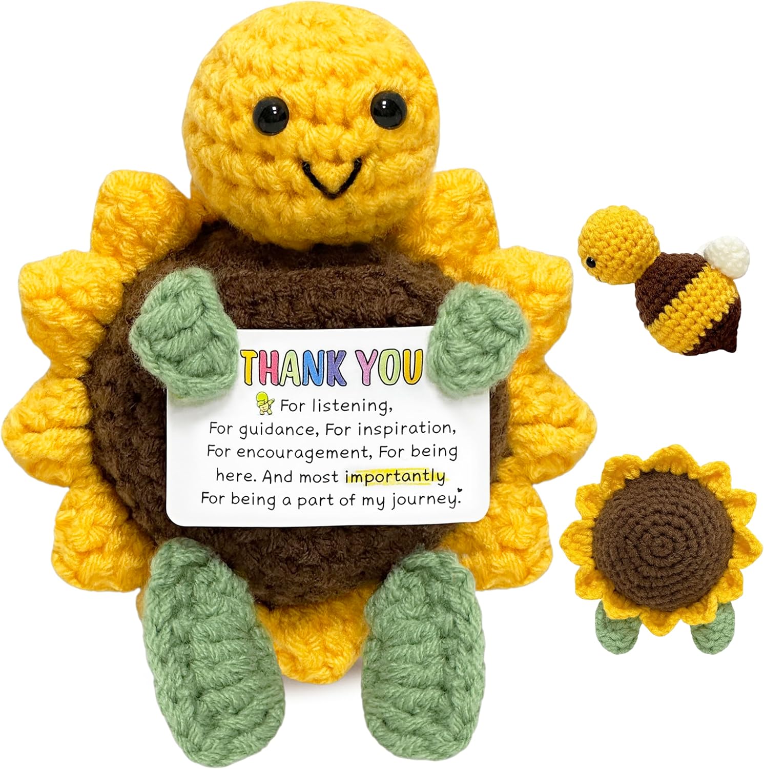 - Thank You Crochet Turtle Gifts: Say hello to your new tiny gratitude messenger—this little crochet turtle brims with big, grateful energy! Its silly charm shines through: a squishy knit shell, and a tiny hidden bee buddy peeking out. Paired with a heartfelt card that reads, ““Thank you for listening, thank you for guidance” it spreads warmth and smiles, ideal for sharing a little “thank you” or just brightening their day