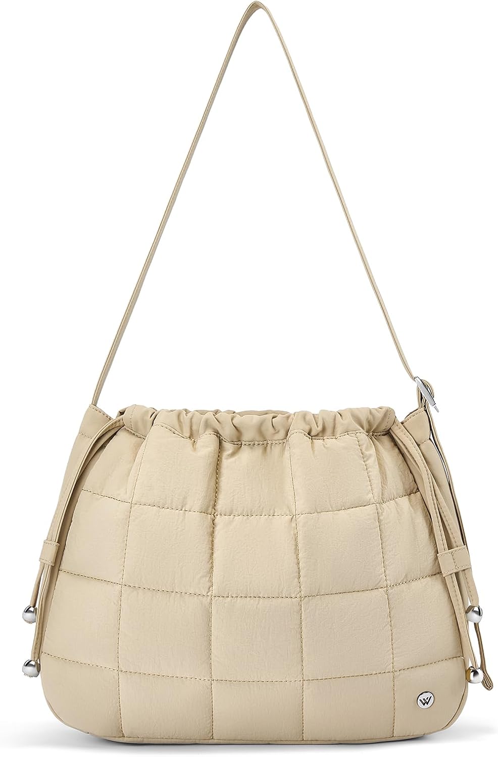 WESTBRONCO Puffer Hobo Bags for Women Puffy Nylon Shoulder Bag, Women's Quilted Handbags with Shoulder Wide Strap