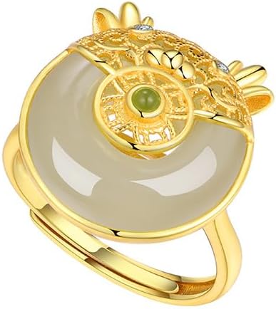 14K Gold over Sterling 925 Sliver Adjustable Natural Hetian Jade Adorable Dragon Ring, Open Design Chinese New Year Auspicious Jewelry, Lucky Charm Gift for Her