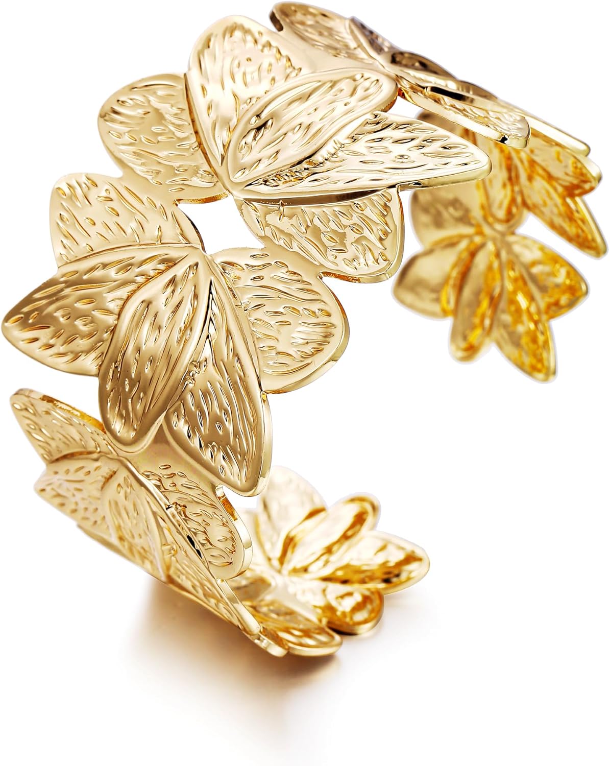 Gold Chunky Cuff Bangle Bracelets for Women Ginkgo Leaf Bracelet Boho Wide Bracelets Statement Bracelet Adjustable Jewelry