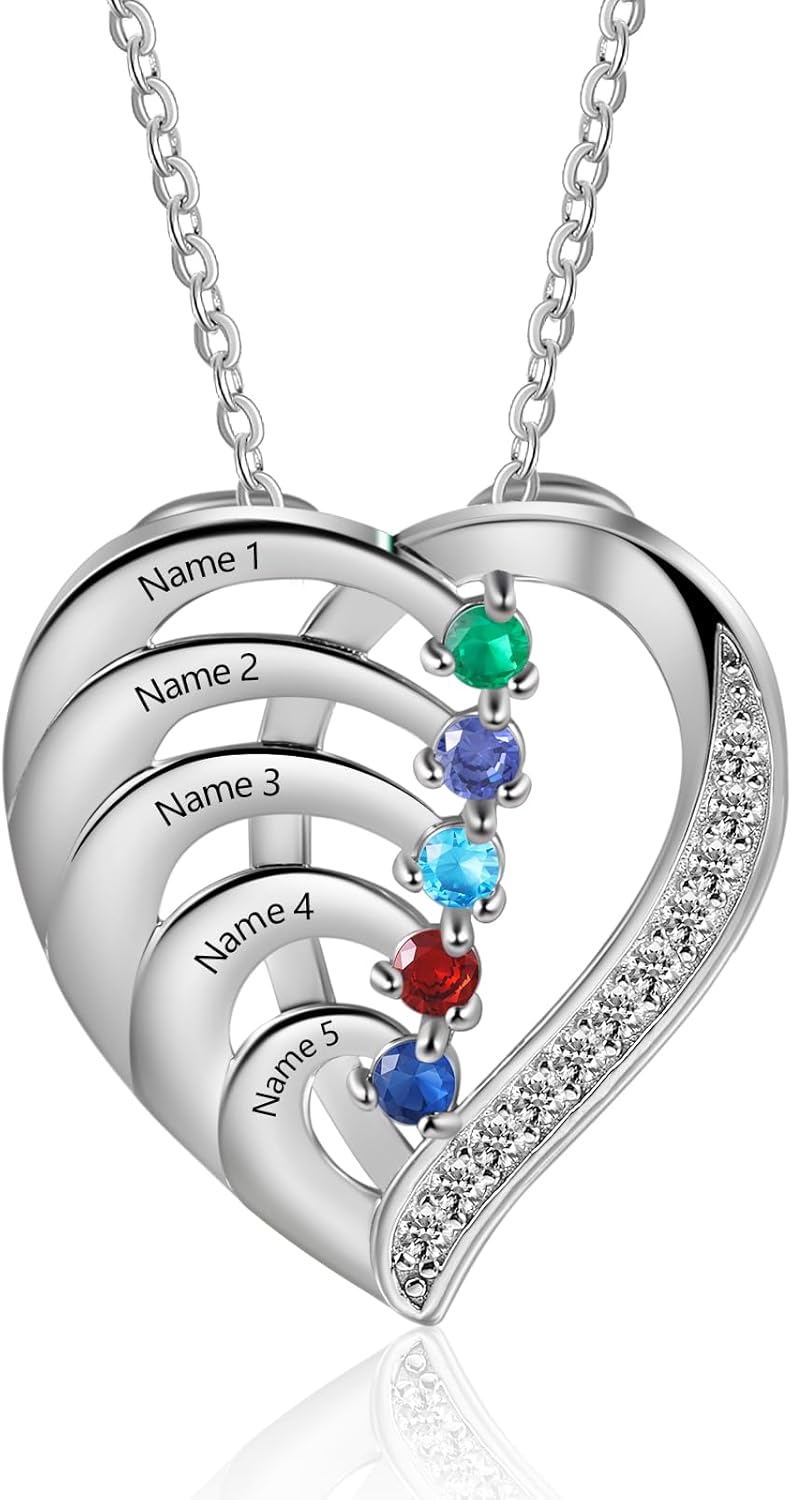 Gifts for Mom Grandma, Necklace with 2-6 Birthstones Personalized Family Pendant Women's Promise Necklace Engraved Names Anniversary Jewelry for Mommy