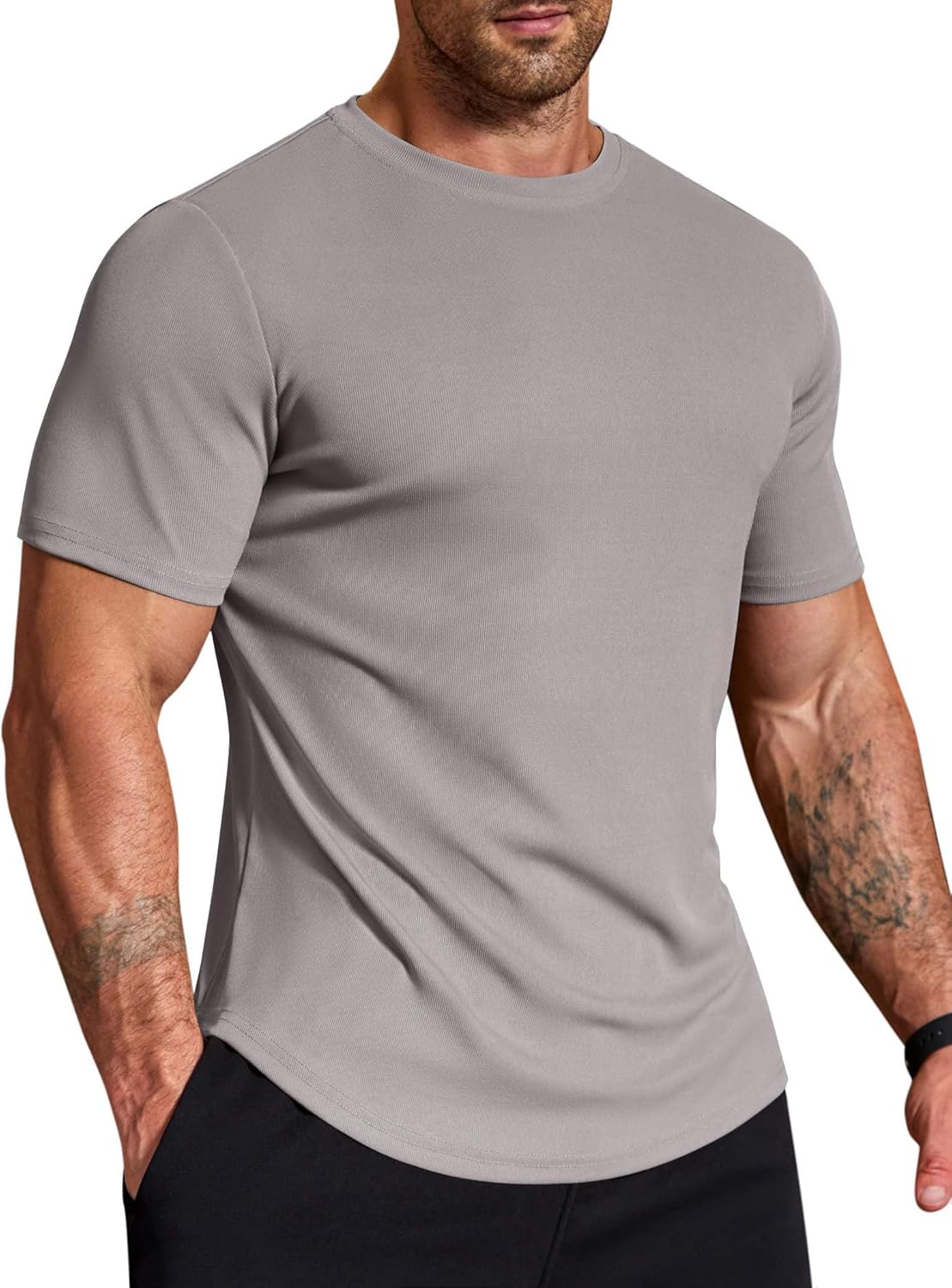 COOFANDY Mens Muscle Shirt Short Sleeve Slim Fit T-Shirts Texture Crewneck Tees Longline Gym Workout Athletic Shirt