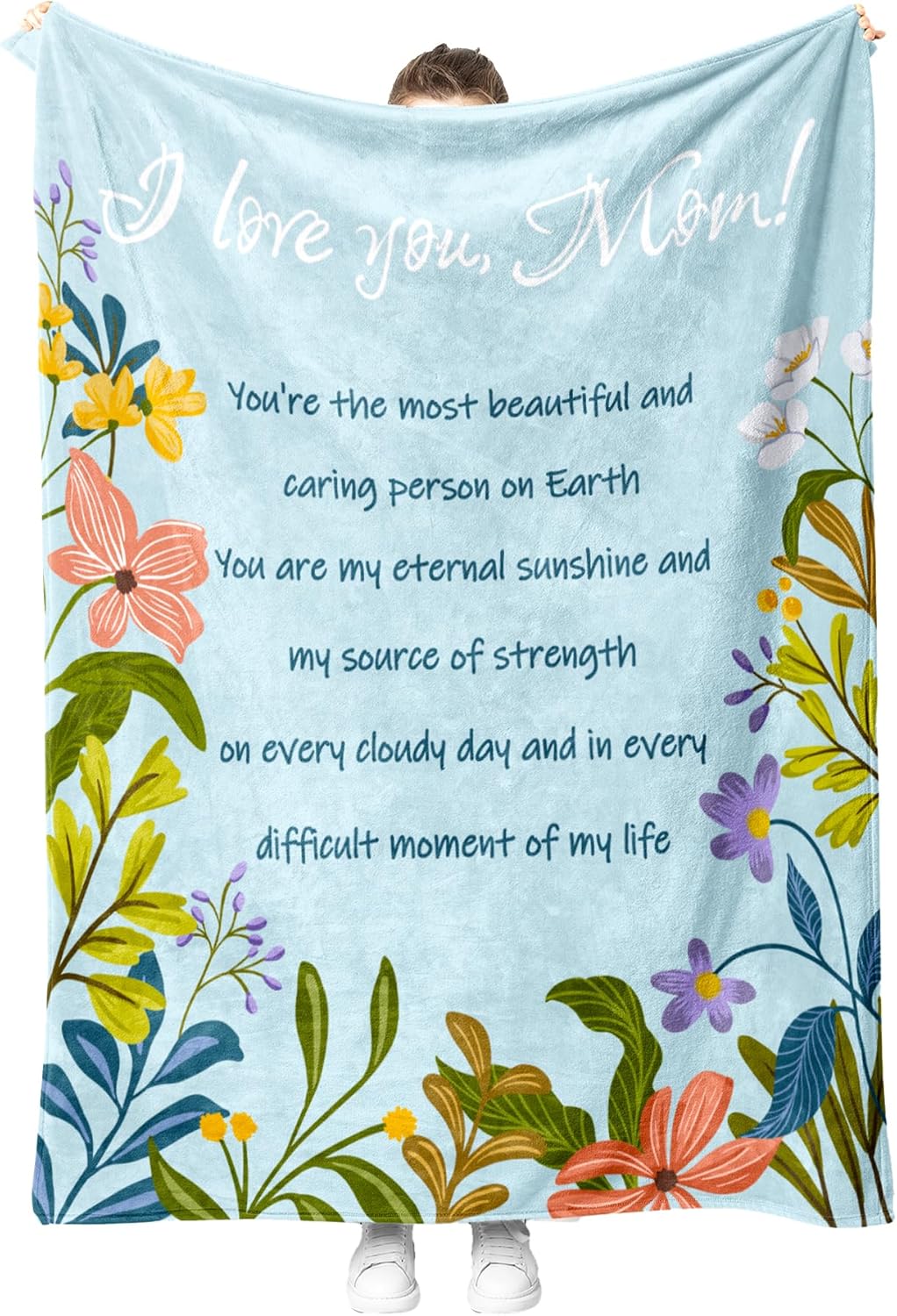 - Snuggle in a Blanket of Love: Making mom staying cozy and comfortable when snuggle with this blanket while reading favorite book or TV show . This cozy blanket is a meaningful way to show your appreciation and make her feel warm and cherished. Whether for a birthday, Mother's Day, or just because, this blanket will wrap your mom in love.