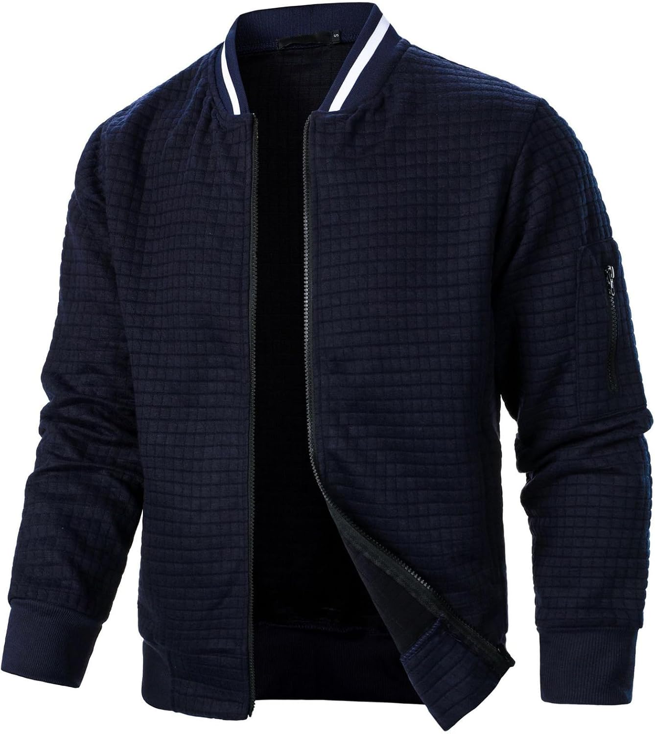 Blokehoway Men's Lightweight Jackets Casual Light Jackets for Men Waffle Bomber Jacket Varsity Coat with Zipper