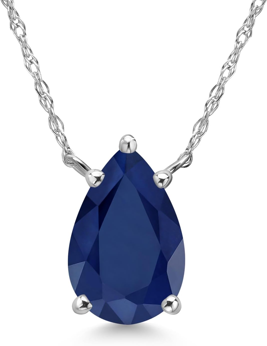 Gem Stone King 14K White Gold Blue Sapphire Pendant Necklace for Women | 2.16 Cttw | Gemstone September Birthstone | Pear Shape 10X7MM | With 18 Inch Chain