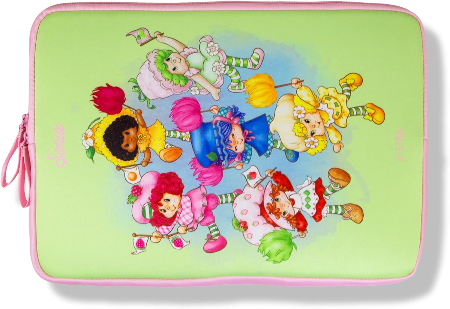 - Celebrate friendship and fun with this stylish 16 inch Strawberry Shortcake Berry Besties Rainbow Tech Sleeve, designed to protect your laptop or tablet in sweet nostalgia. This enchanting design features the sweet, berry-filled world of Strawberry Shortcake and her Berry Besties. It’s a heartwarming rainbow themed art that blends the adorable childhood icons of Strawberry Shortcake's classic berry brigade—perfect for fans craving a touch of childhood magic. Crafted from durable, padded material, it offers excellent protection against scratches, dust, and minor bumps, with a secure zipper closure for easy access.