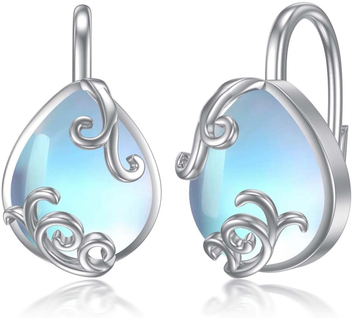 Teardrop Moonstone Leverback Earrings for Women 925 Sterling Silver Moonstone Dangle Jewelry for Sensitive Ears