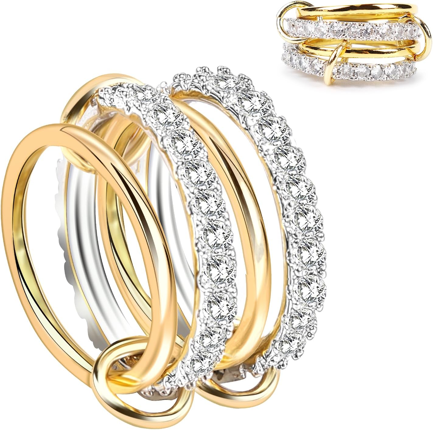 Stackable Rings For Women Interlocked Ring Stack Interlocking mixed Metal Silver And Gold Set Size 5-11 18k Gold Plated Cubic Zirconia Rings