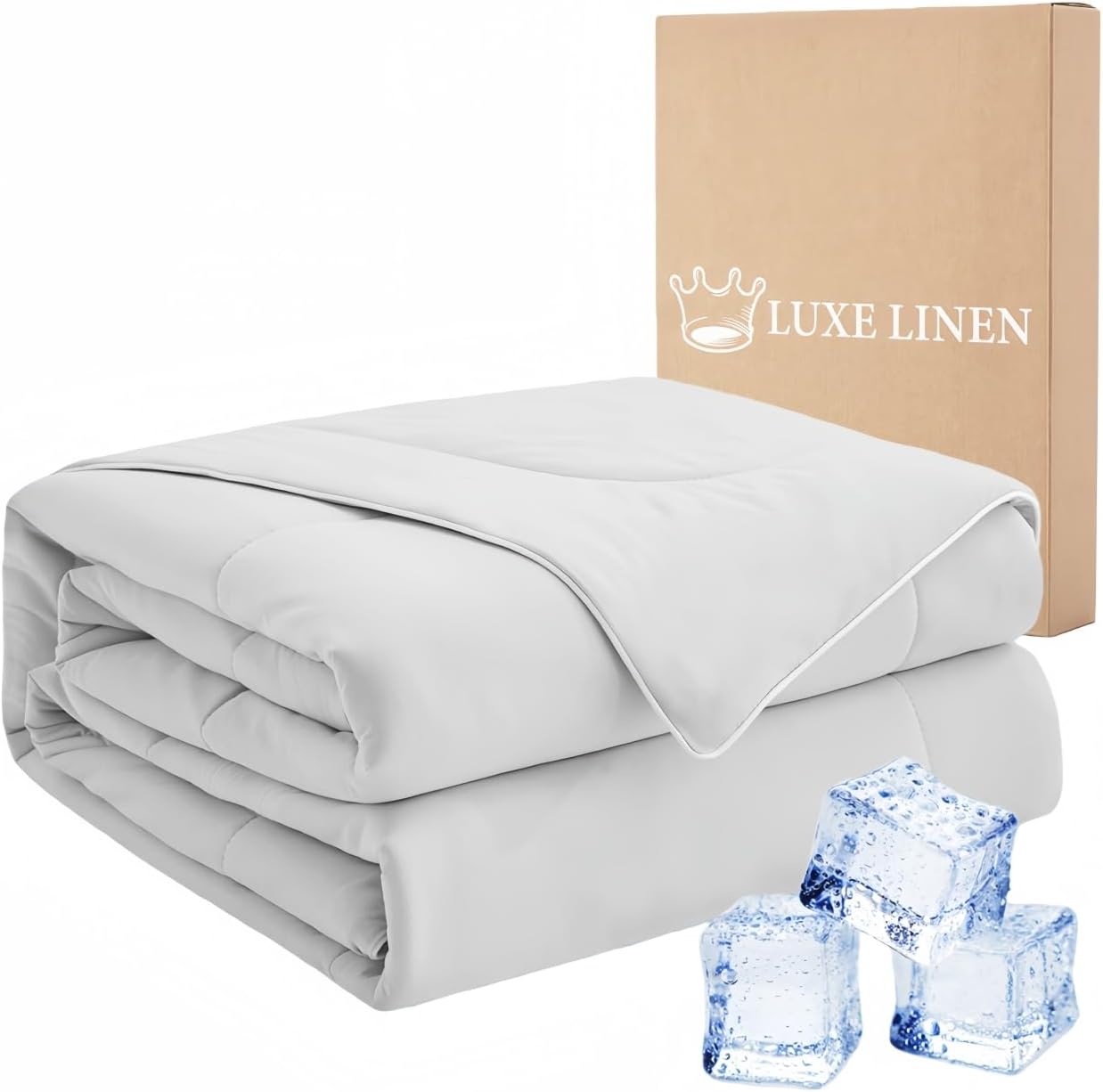 Cooling Comforter King Size, Q-Max 0.47 Lightweight Cooling Blanket for Hot Sleepers, Breathable Bedding for Night Sweats 106"x 90"(King/Cali King, Grey)