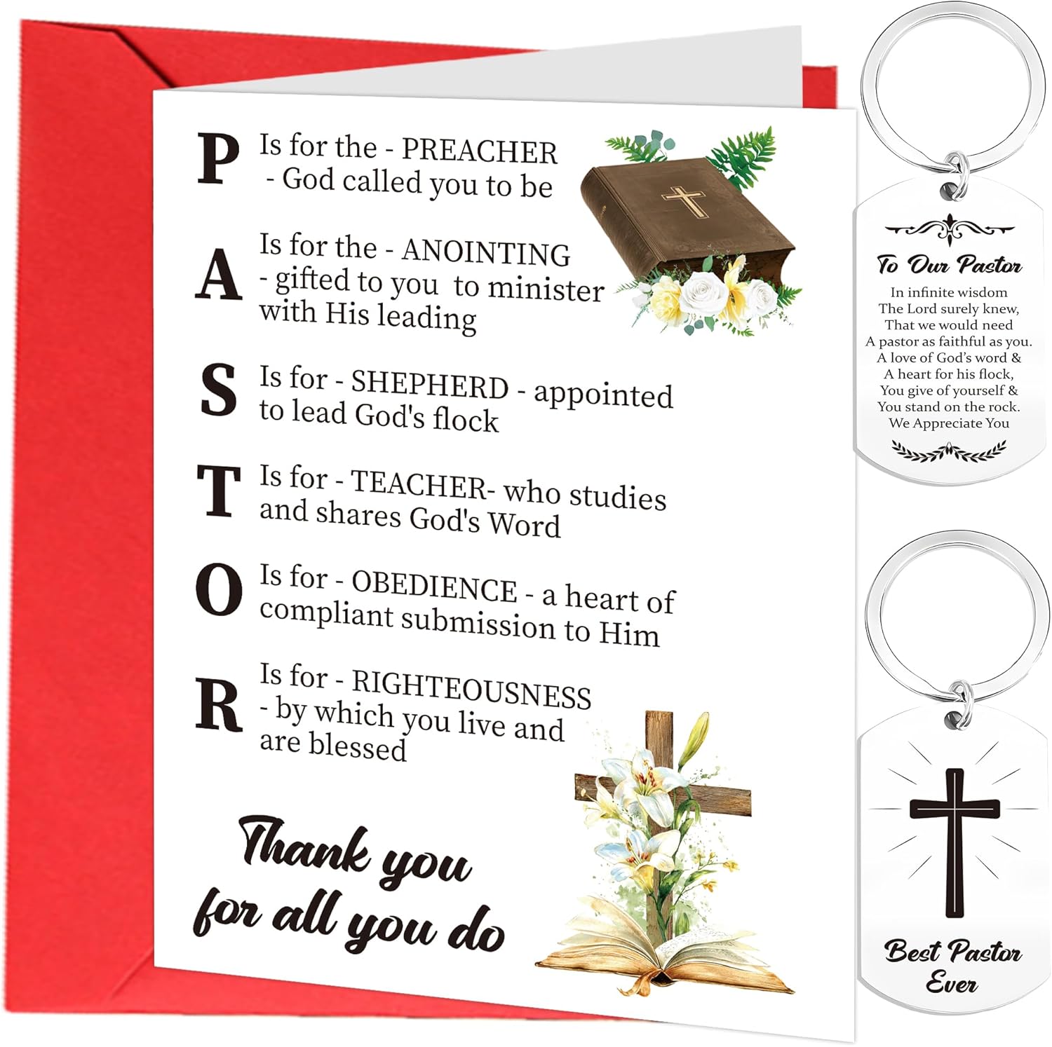 Pastor Appreciation Gifts Cards Kit - Thank You Gifts Card With Keychain Envelop For Pastor Clergy Month Pastor Birthday For Men Women Minister