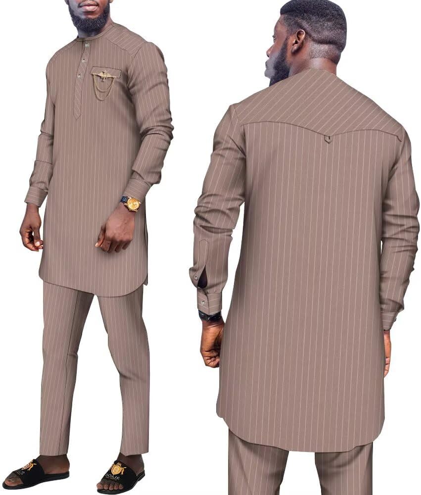 African Suit for Men Traditional Stripe Blazer and Pants 2 Piece Set Business Formal Dress Suit Party Wedding Evening