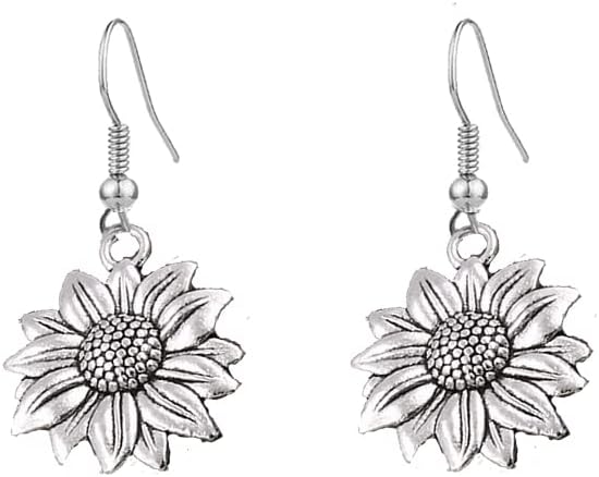 Picano Antique Gold Silver Sunflower Dangle Earrings for Women