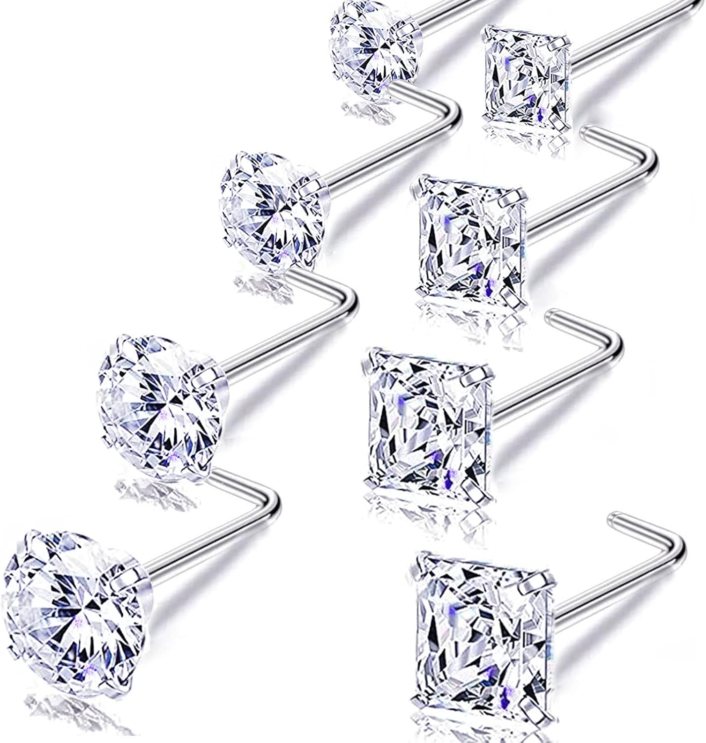Nose Rings Studs L Screw Bone Shpaed Nose Studs for Women 18g 20g 22g 14K Gold Plated