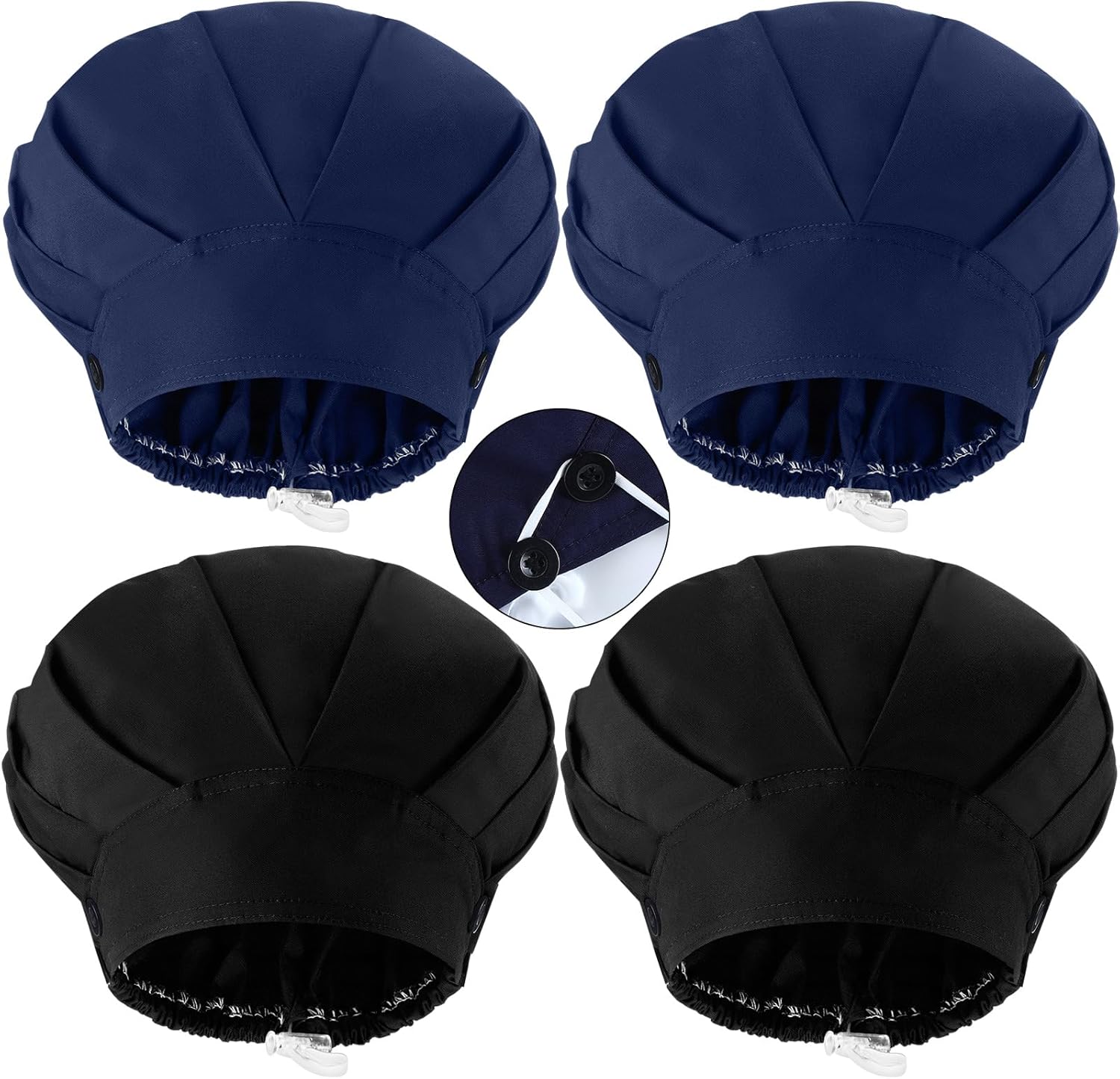 4 Pieces Bouffant Caps with Button and Sweatband Adjustable Nurse Working Hat Elastic Band Scrub Cap for Women Men