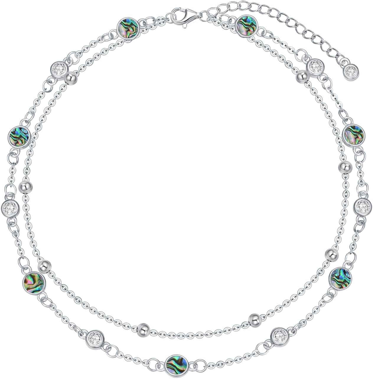 Anklets for Women 925 Sterling Silver Natural Stone Layered Anklet Beach Summer Fine Jewelry Birthday Gifts for Her Mom Wife