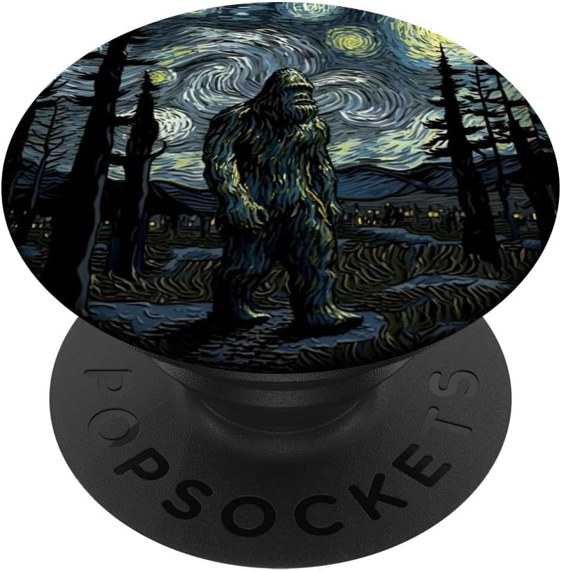 Bigfoot Starry Night Sasquatch Van Gogh Sky Painting Art PopSockets Adhesive PopGrip