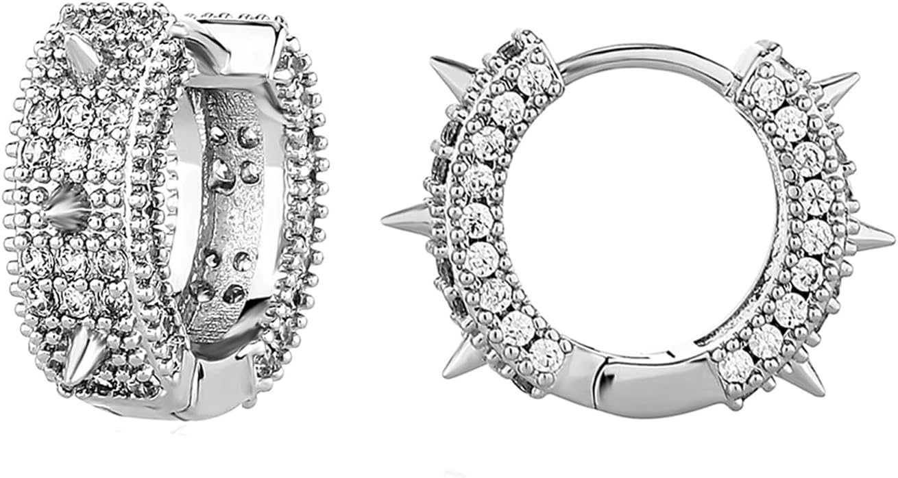Goth Punk Black Hoop Earrings For Men 14K Gold Spike Hoop Earrings 5A+ Cubic Zirconia Gothic Huggie Earrings Trendy Cool Edgy Vampire Earrings For Women Men for All Occasions