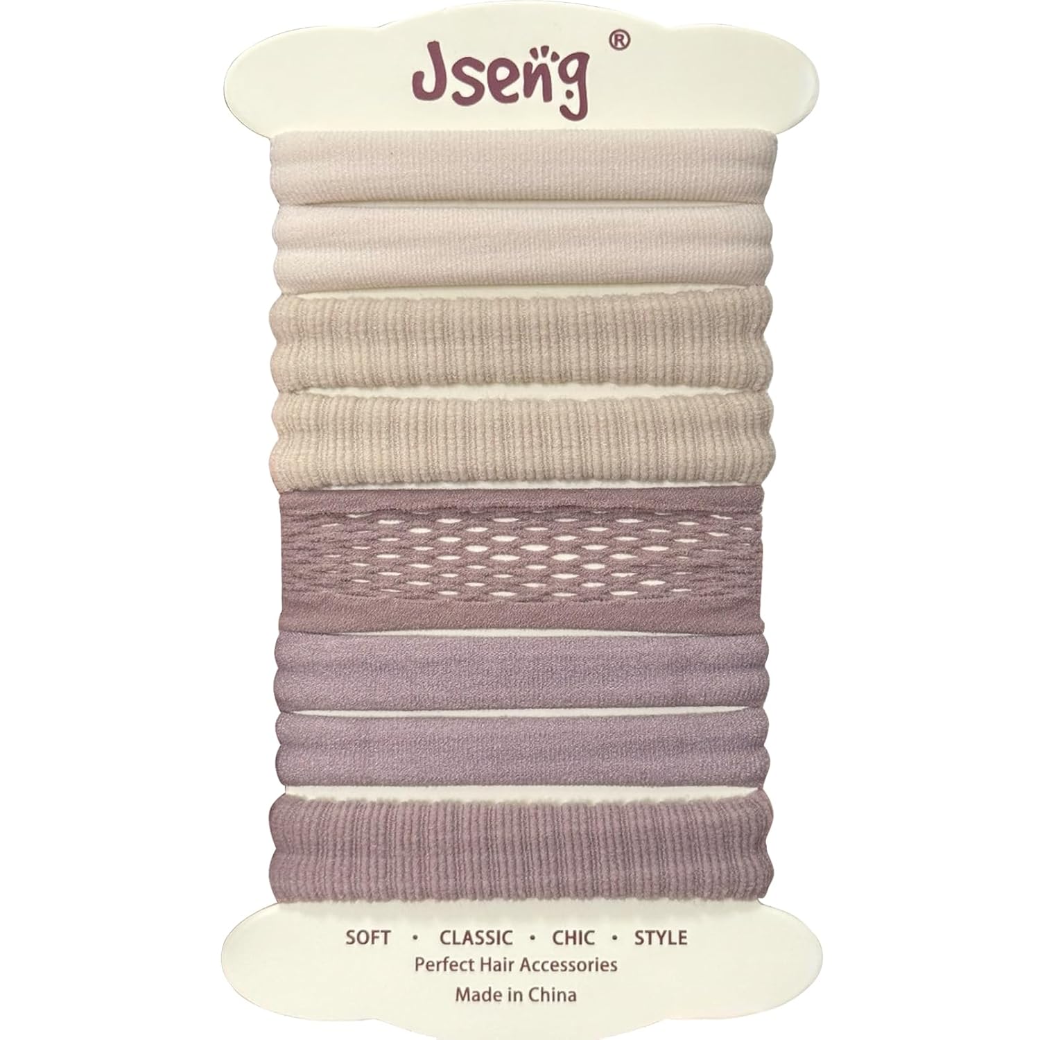 Jseng 8Packs Seamless Hair Ties for Women - Soft No Damage Elastic Hair Accessories for Thick Curly Hair - Beige & Dusty Lavender