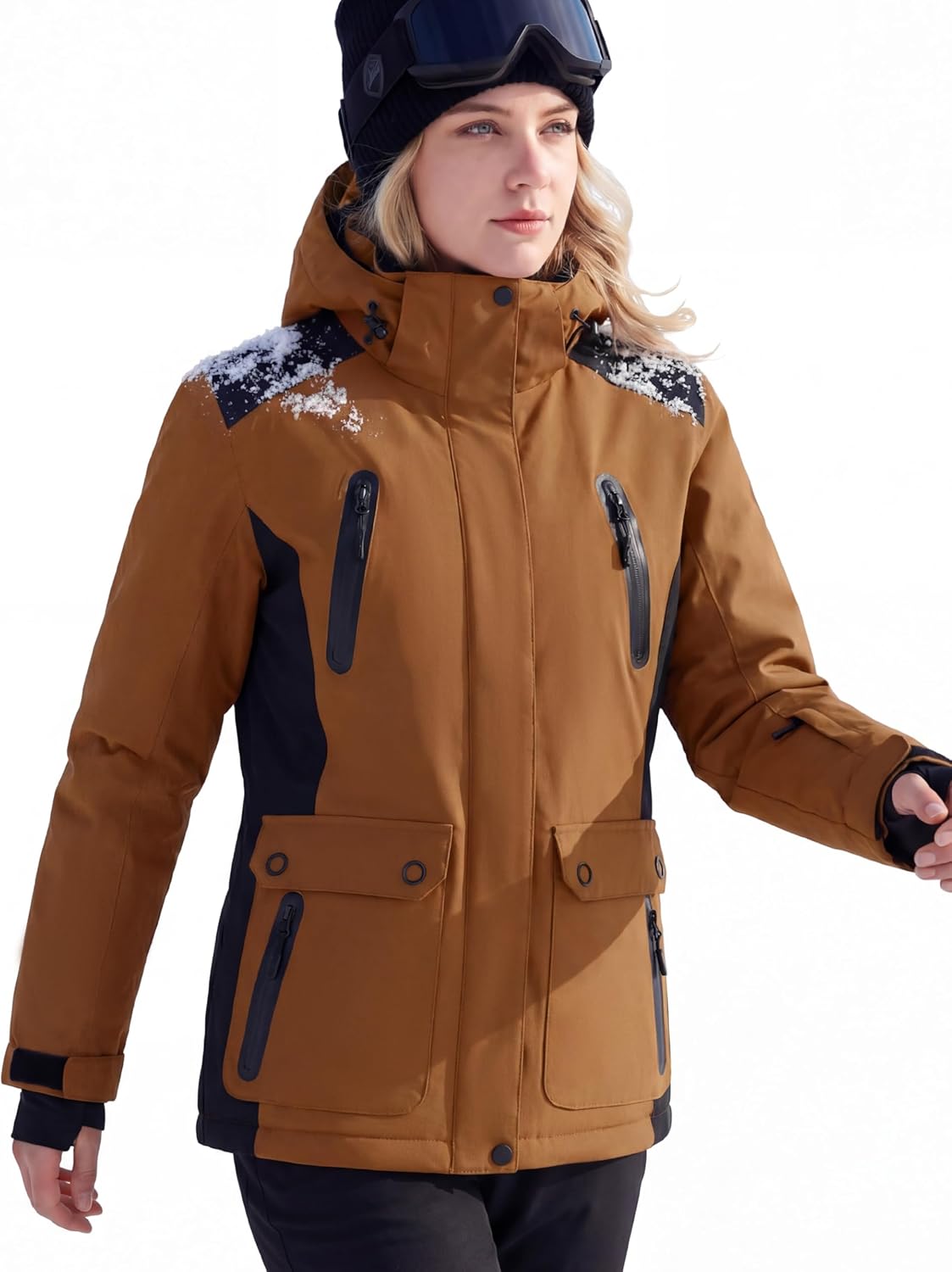 FREE SOLDIER Women's Waterproof Ski Jacket Fleece Lined Winter Coat Windproof Hooded Jacket Fully Taped Seams