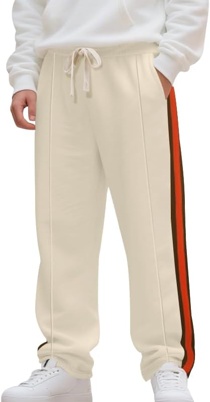 ZOCANIA Mens Casual Pants Men Knitted Wide Leg Striped Elastics Waist Straight Leg Trousers Men's Pant with Pockets